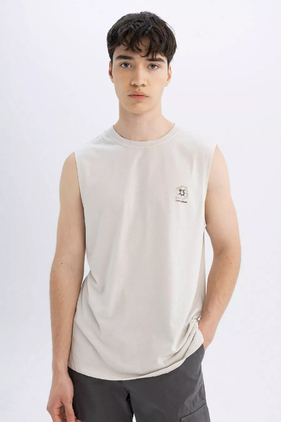 % Baumwolle Regular Fit Bedrucktes Rundhals-Top hs