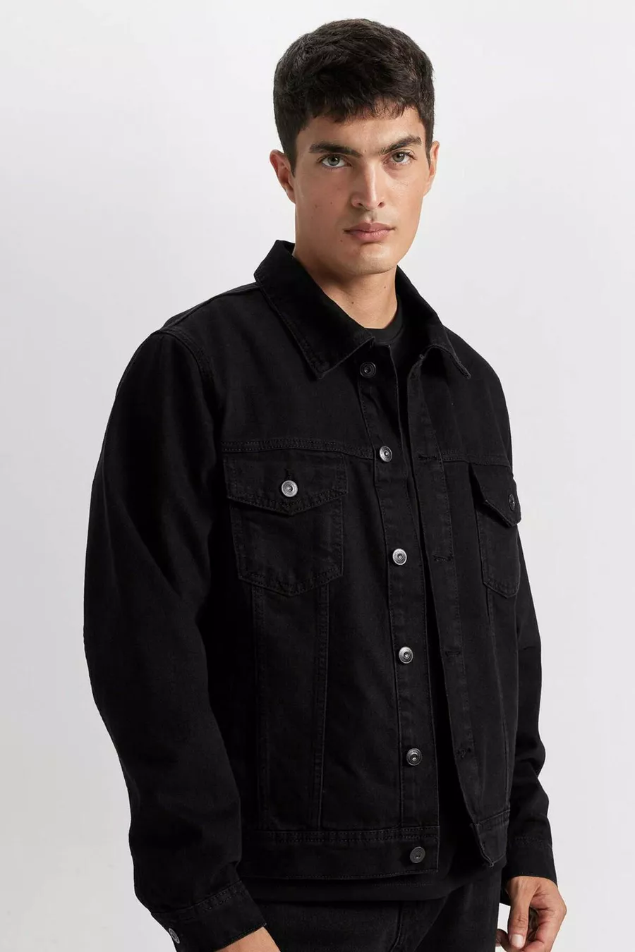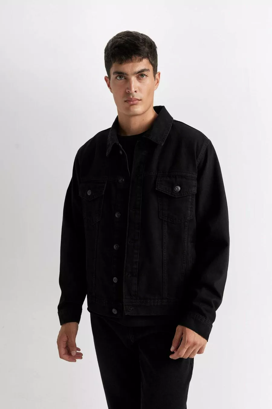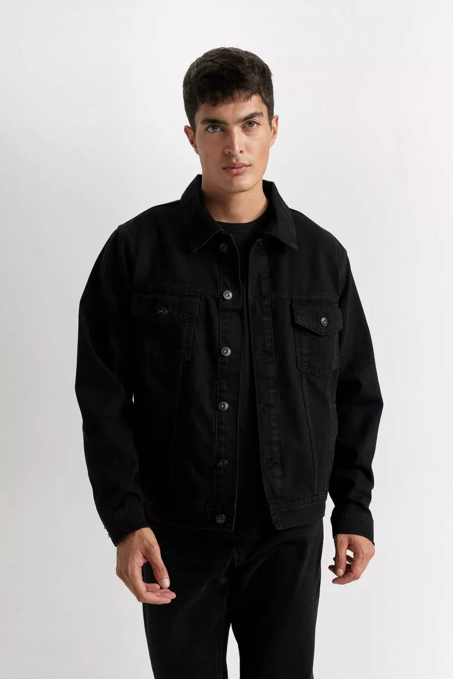 Ärmellänge: Langarm Muster: Uni Schnitt: Regular Kragenart: Sakko-Kragen Material: 100% Baumwolle Stoffart: Denim Farbe: Schwarz Verschlussart: Knöpfe Ärmellänge: Lang Futter: Ungefüttert Länge: Standard Silhouette: Denim Anlass: Casual/Alltag Nachhaltigkeitsdetails: Nein Gürtel: Ohne Gürtel Produkttyp: Uni Materialzusammensetzung: 100% Baumwolle Waschanleitung: Typ 2 Herkunft: TR Verpackung: Keine Verpackung