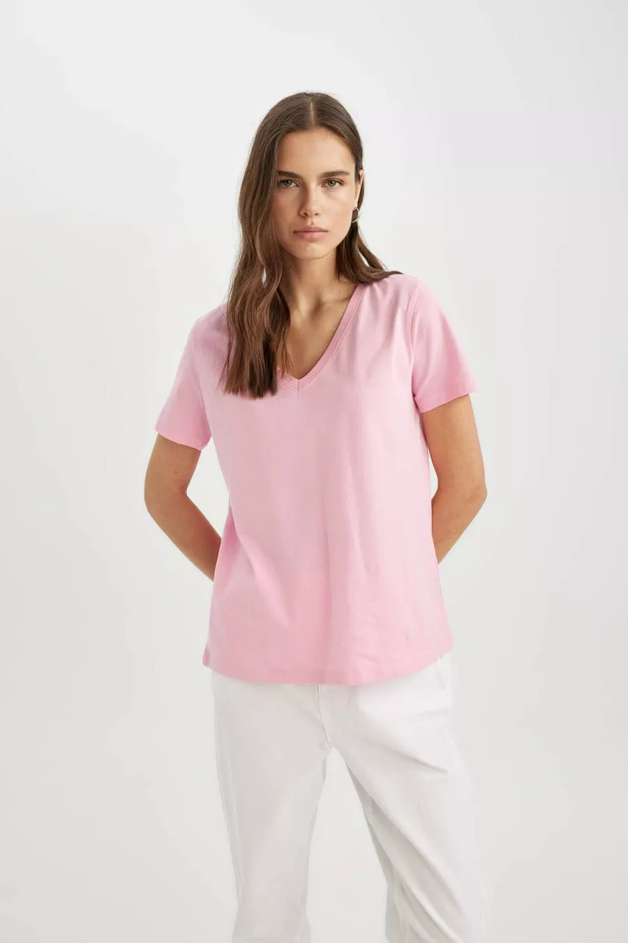 Muster: Einfarbig Schnitt: Regular Kragenart: V-Ausschnitt Material: 100% Baumwolle Stoffart: Gestrickt Ärmellänge: Kurzarm Farbe: Pink Packungsinhalt: Einzelstück Technik: Keine Tasche: Ohne Tasche Ärmellänge: Kurz Kollektion: Basic Länge: Standard Anlass: Alltag Besonderes Merkmal: Nahtlos Druck/Sticktechnik: Ohne Druck Nachhaltigkeitsdetail: Nein Silhouette: Basic Persona: Cool & Komfort Materialzusammensetzung: 100% Produkt Waschanleitung: Typ 3 Saison: Sommer Herkunft: TR Verpackungszustand: Keine Verpackung