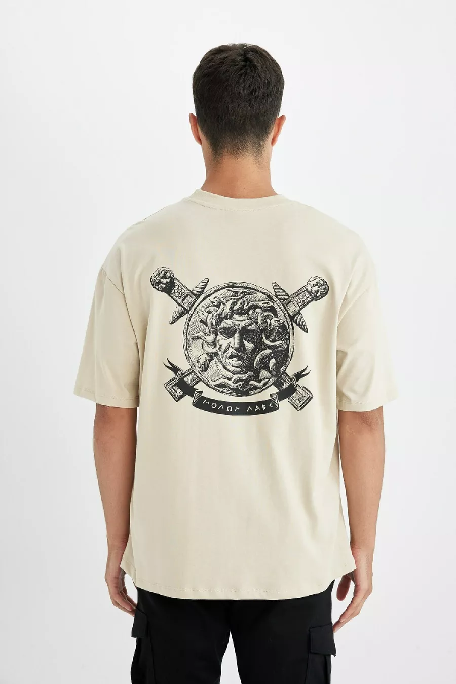 % Baumwolle Oversize Weit geschnittenes T-Shirt mit Rundhalsausschnitt und Rückenaufdruck, kurzärmelig au