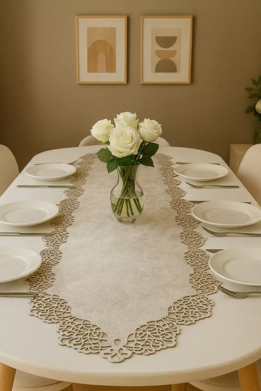 Beige (DUNKLECREME) Wildlederstoff Tischläufer cm - Modernes Design