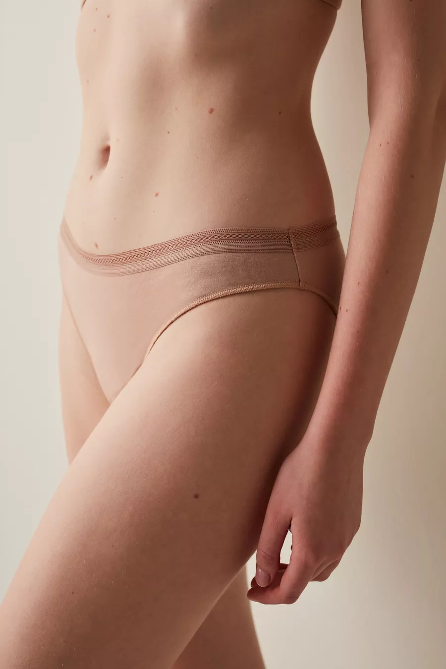 Beige Easy Baumwoll-Slip mit Besatz