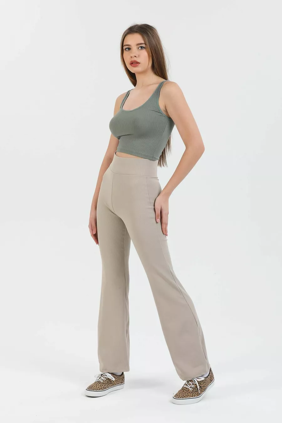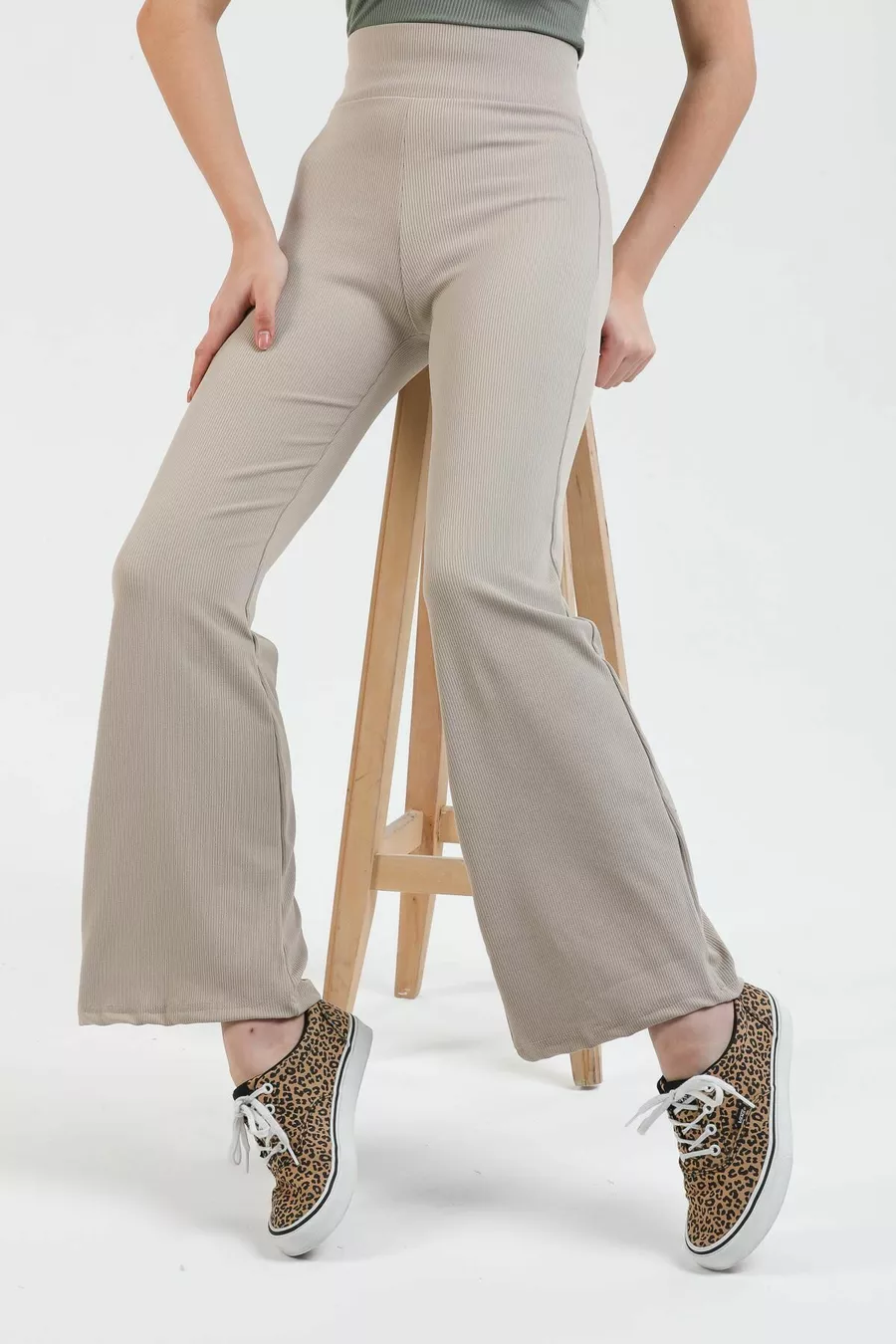 Beige Hoch taillierte, gerippte, formgebende Kaschmir-Spanien Fit-and-Flare Strickleggings