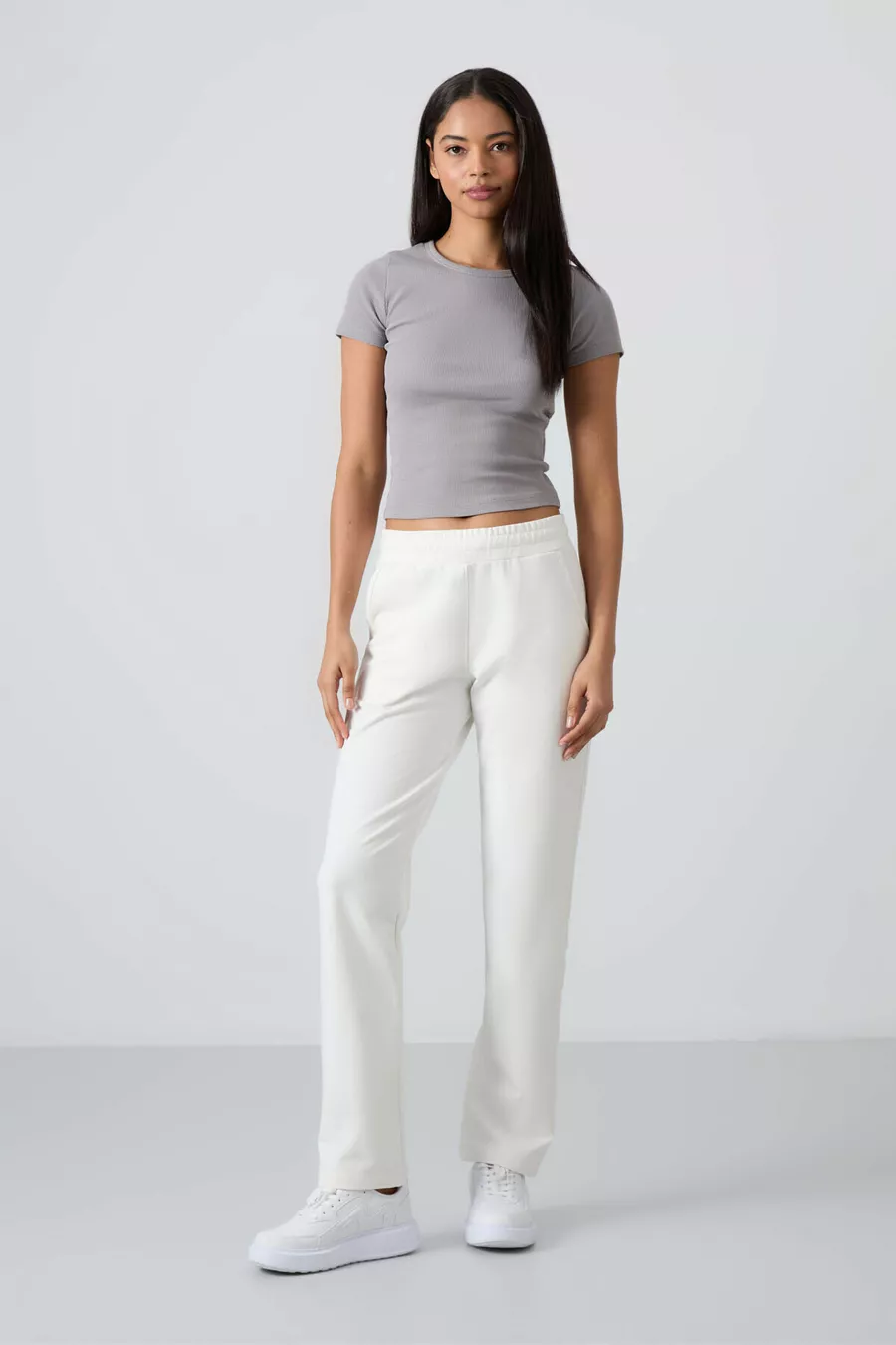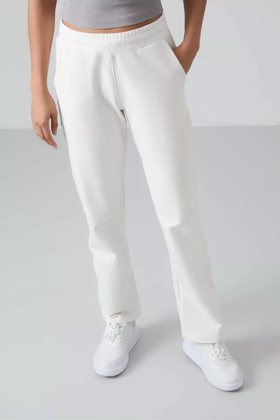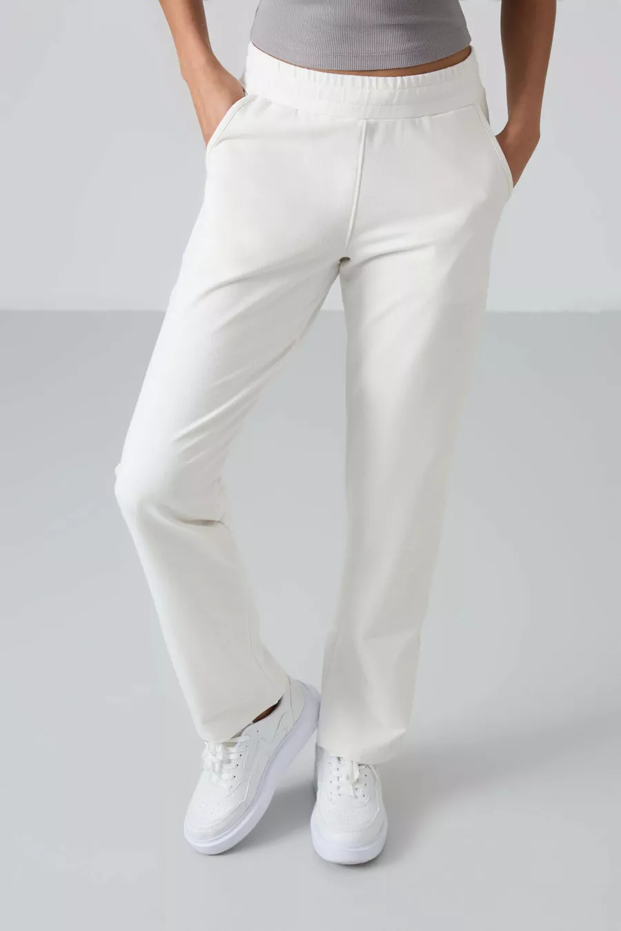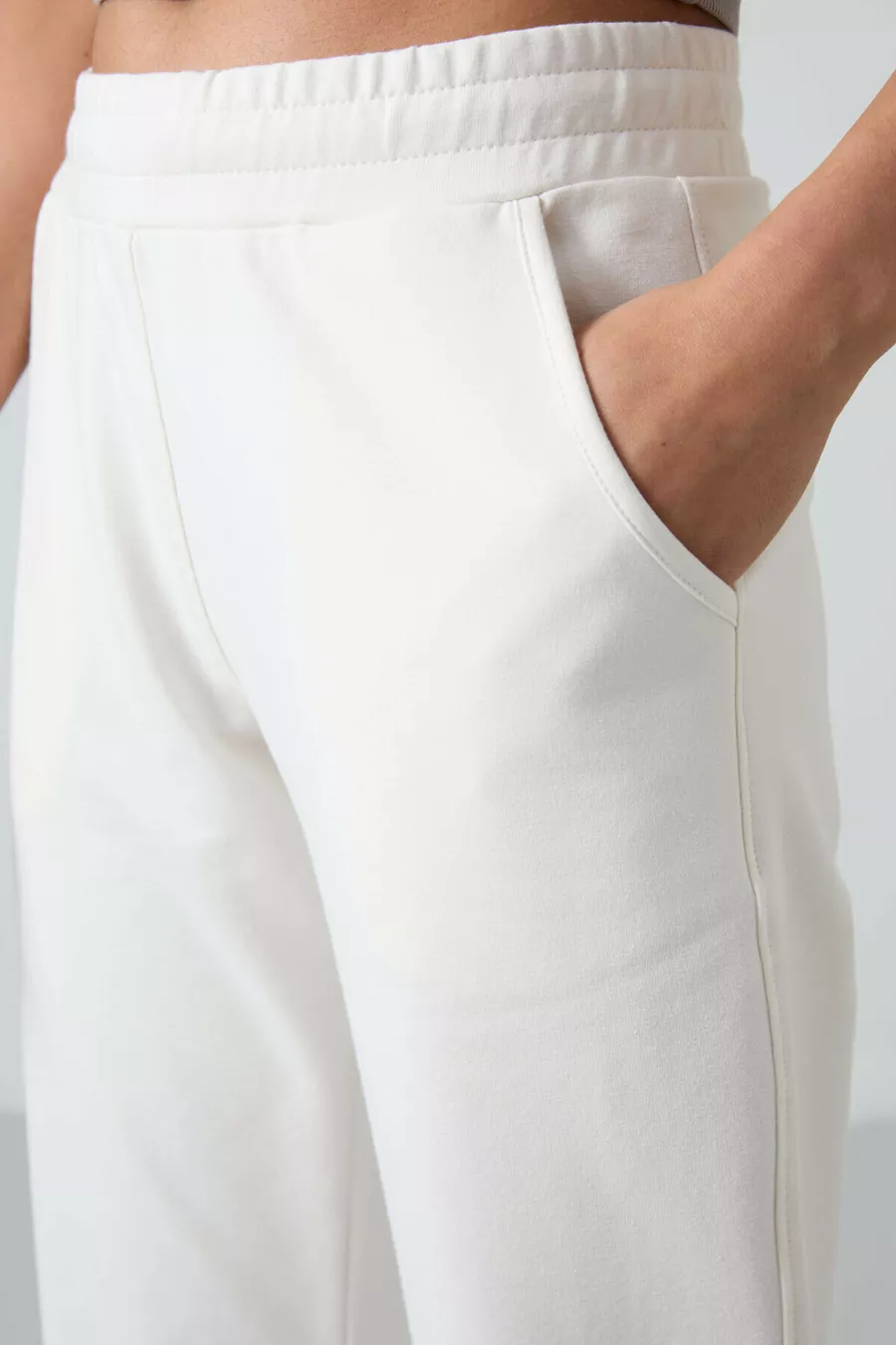 Beige Hohe Taille Damen Jogginghose mit Taschen, Lockere Passform, Klassischer Saum -