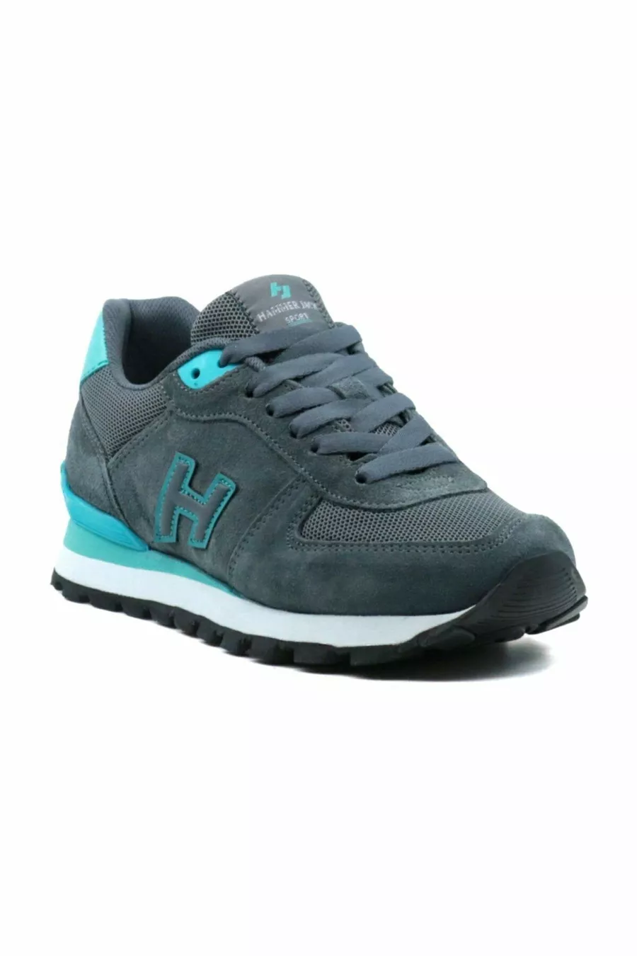 Bequeme Damen Lifestyle Sneaker Turnschuhe Echtleder Grau Türkis