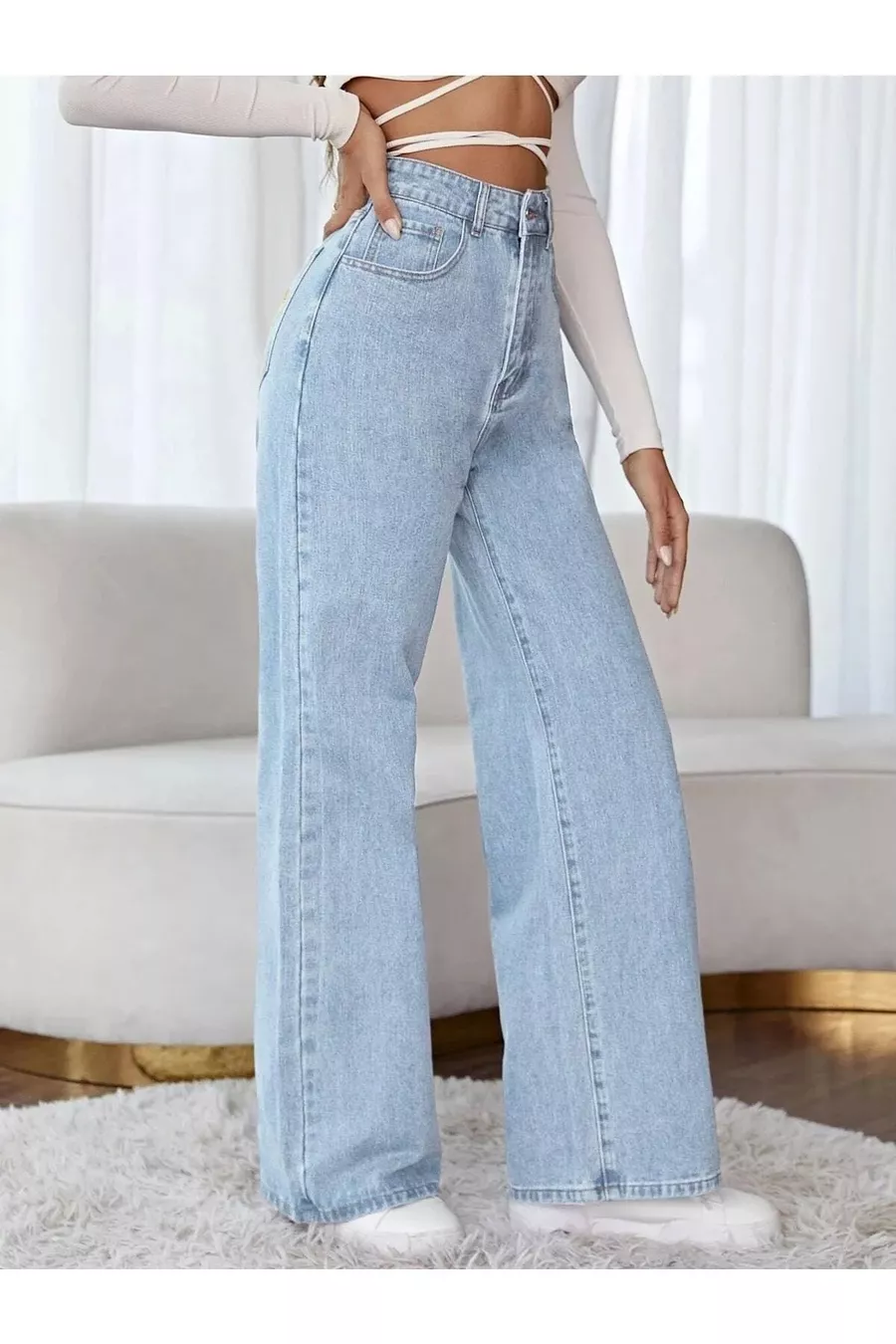 Bipa Super Hohe er Snow Wash Blaue Stretch Lässige Jeans Palazzo Hose