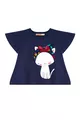 Blumiges Katzenmädchen Kinder Marineblaues Sommer-T-Shirt Poplin-Shorts-Set