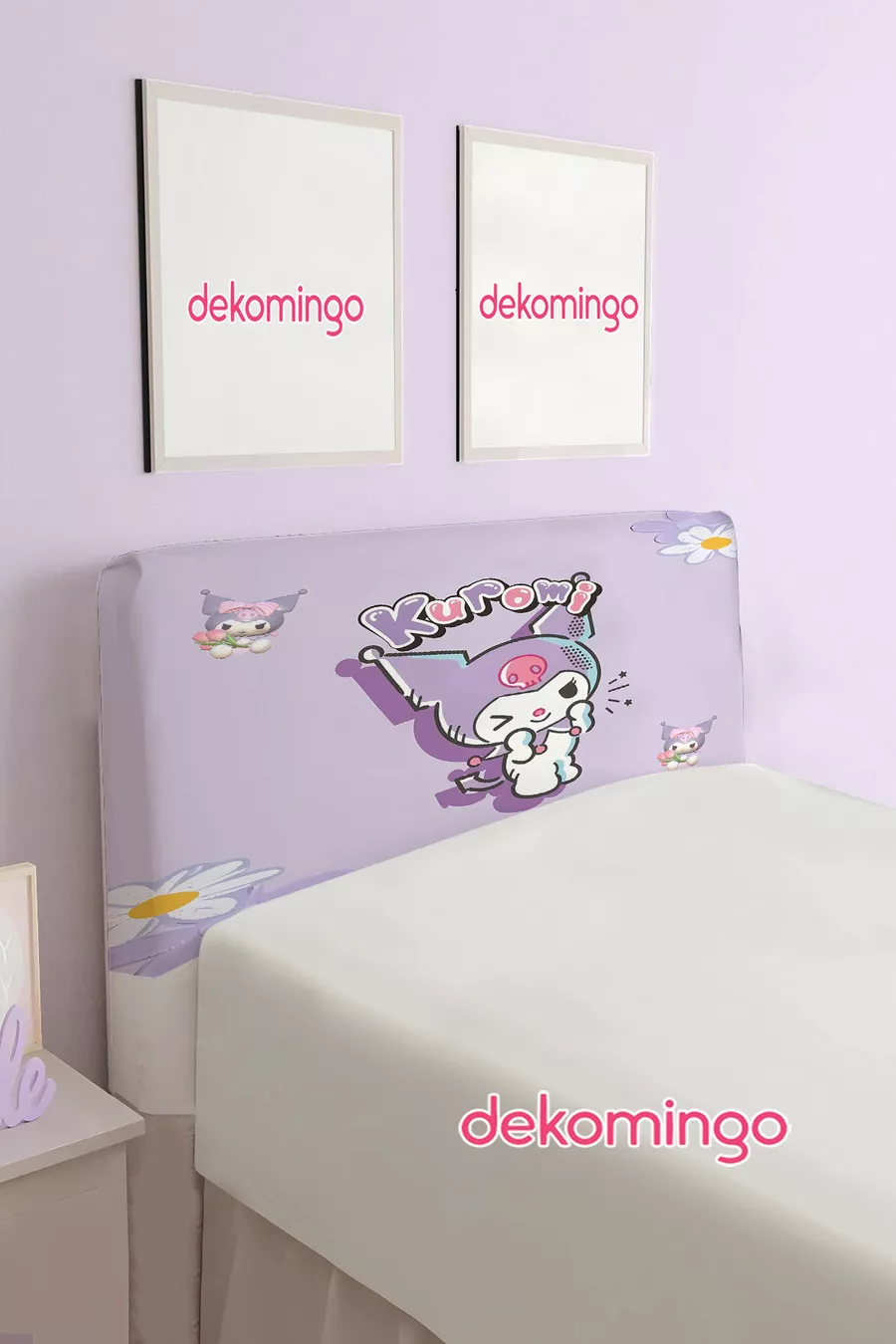 Blumiges Lila Kuromi Muster Bettkopfteilbezug (Einzeln)