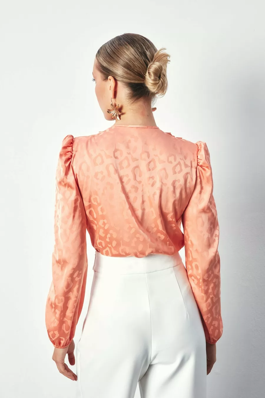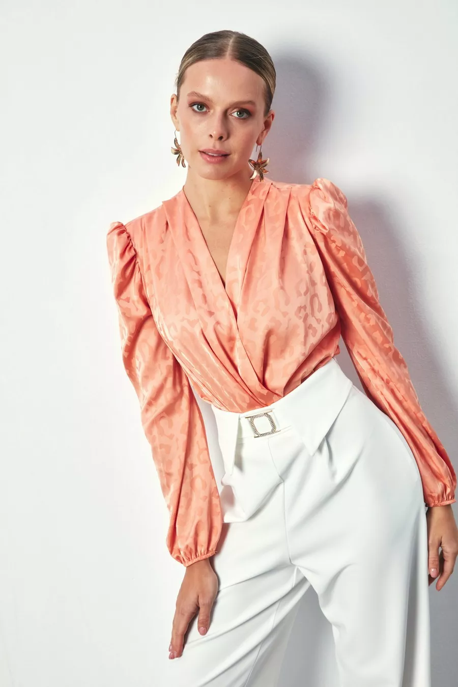 Body-Bluse mit Wickelmuster - Lachsfarben