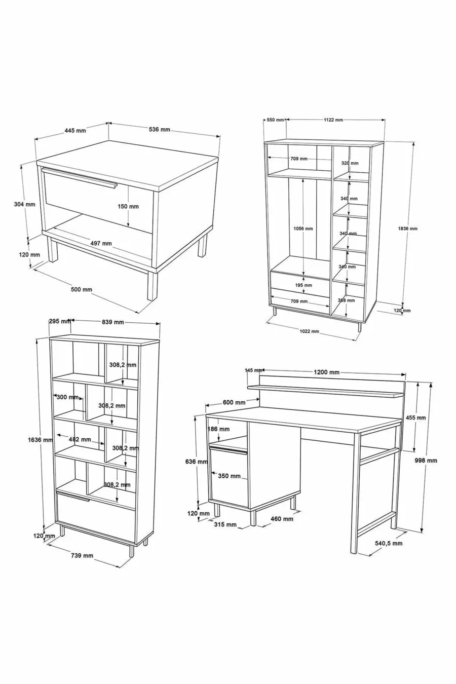 Bohem Jugendzimmer Set 5-teilig Weiß -W