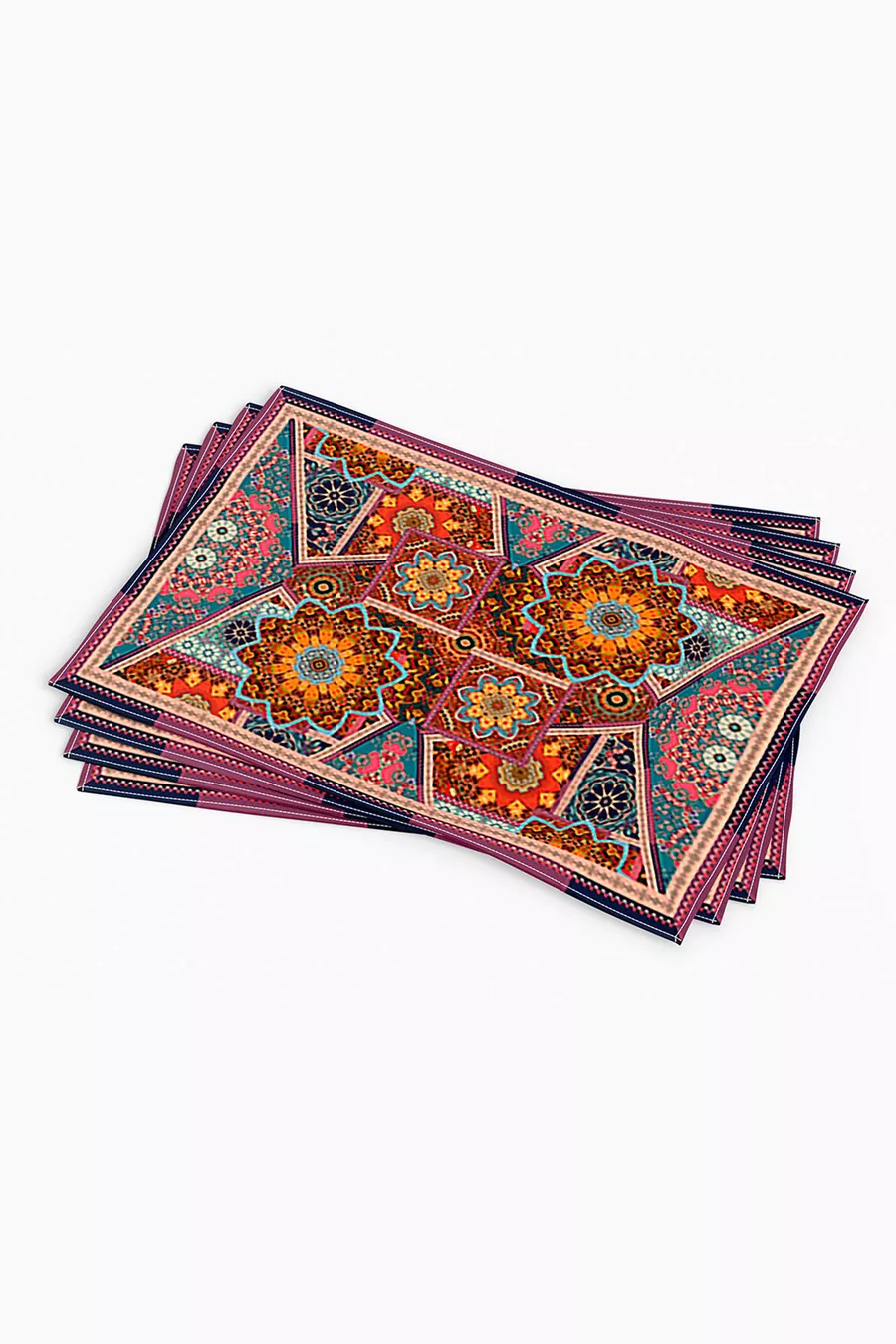 Braun Bunt Ethnisch Vintage Muster Digital Bedrucktes Amerikanisches Platzset 4-teiliges Set -as