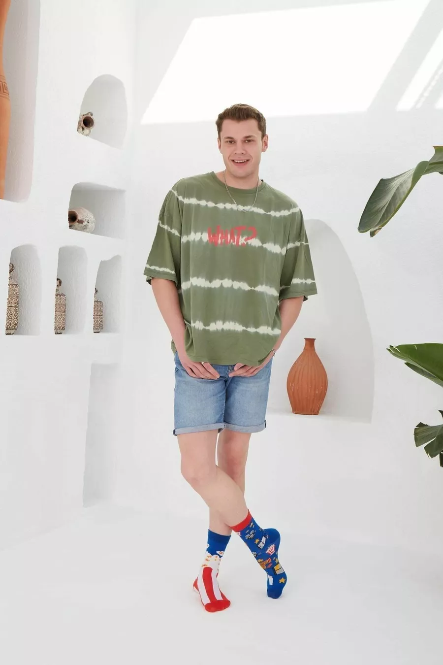 Bunte Socken mit links-rechts Popcorn-Kino-Muster