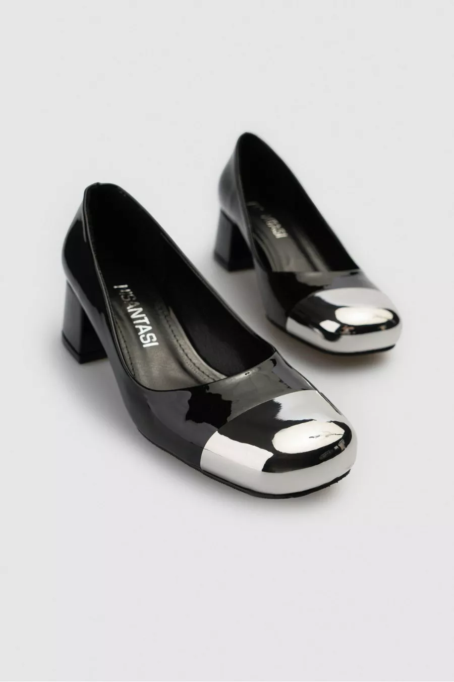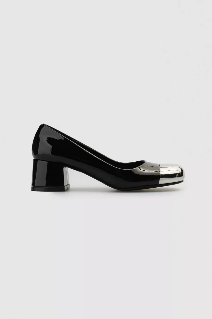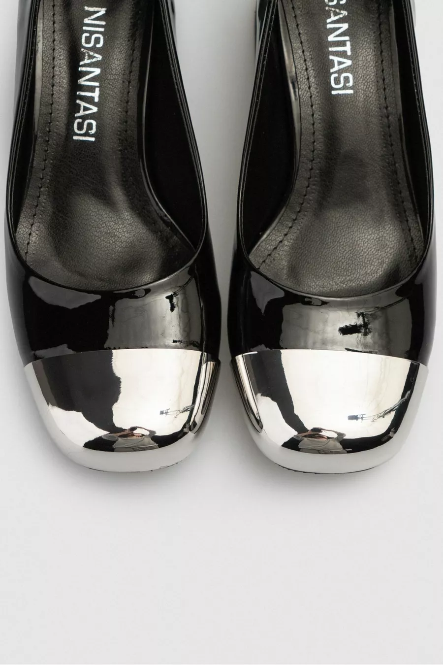 Candace Damen Heels aus schwarzem Lackleder mit Zehenpartie und Platinum Detail