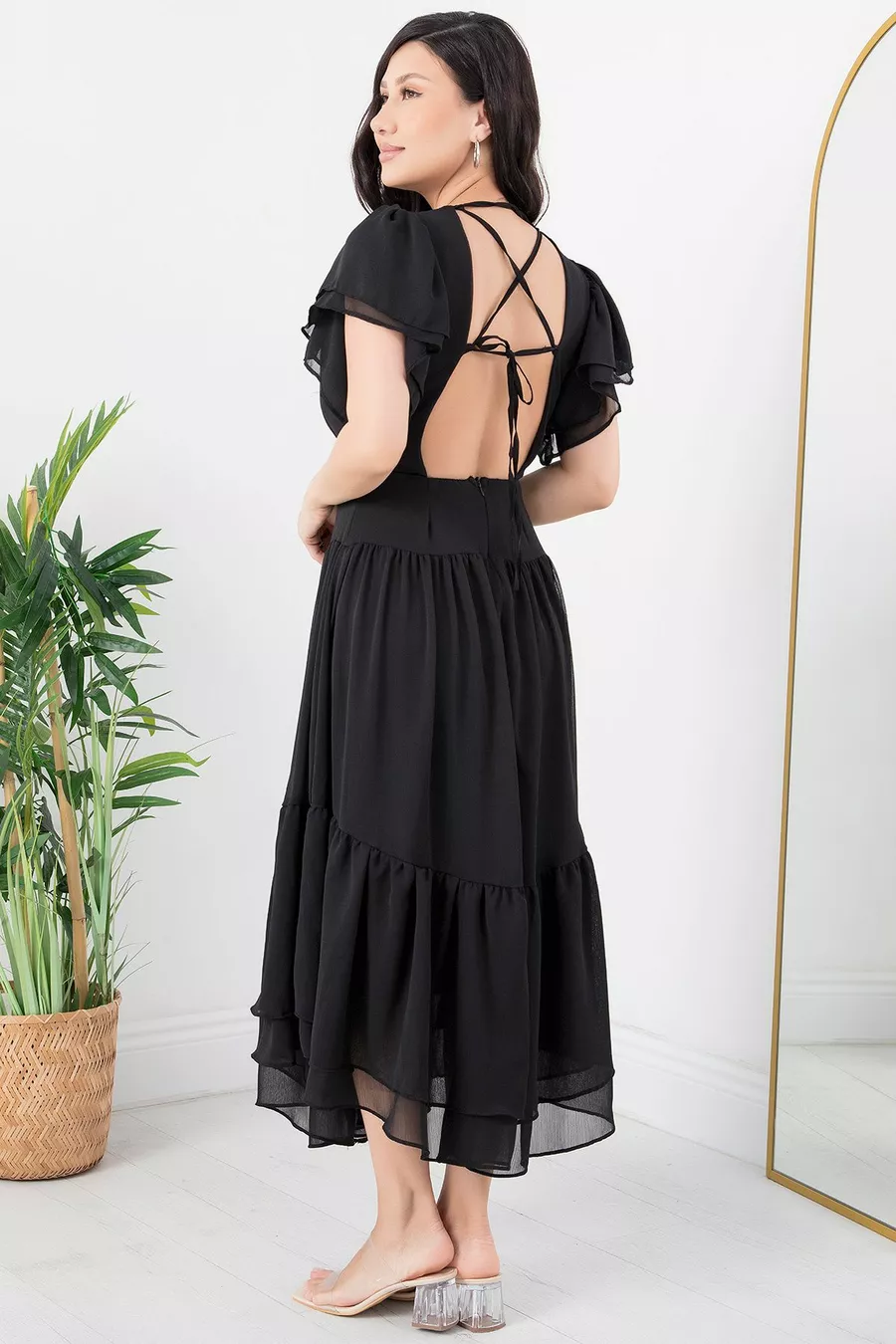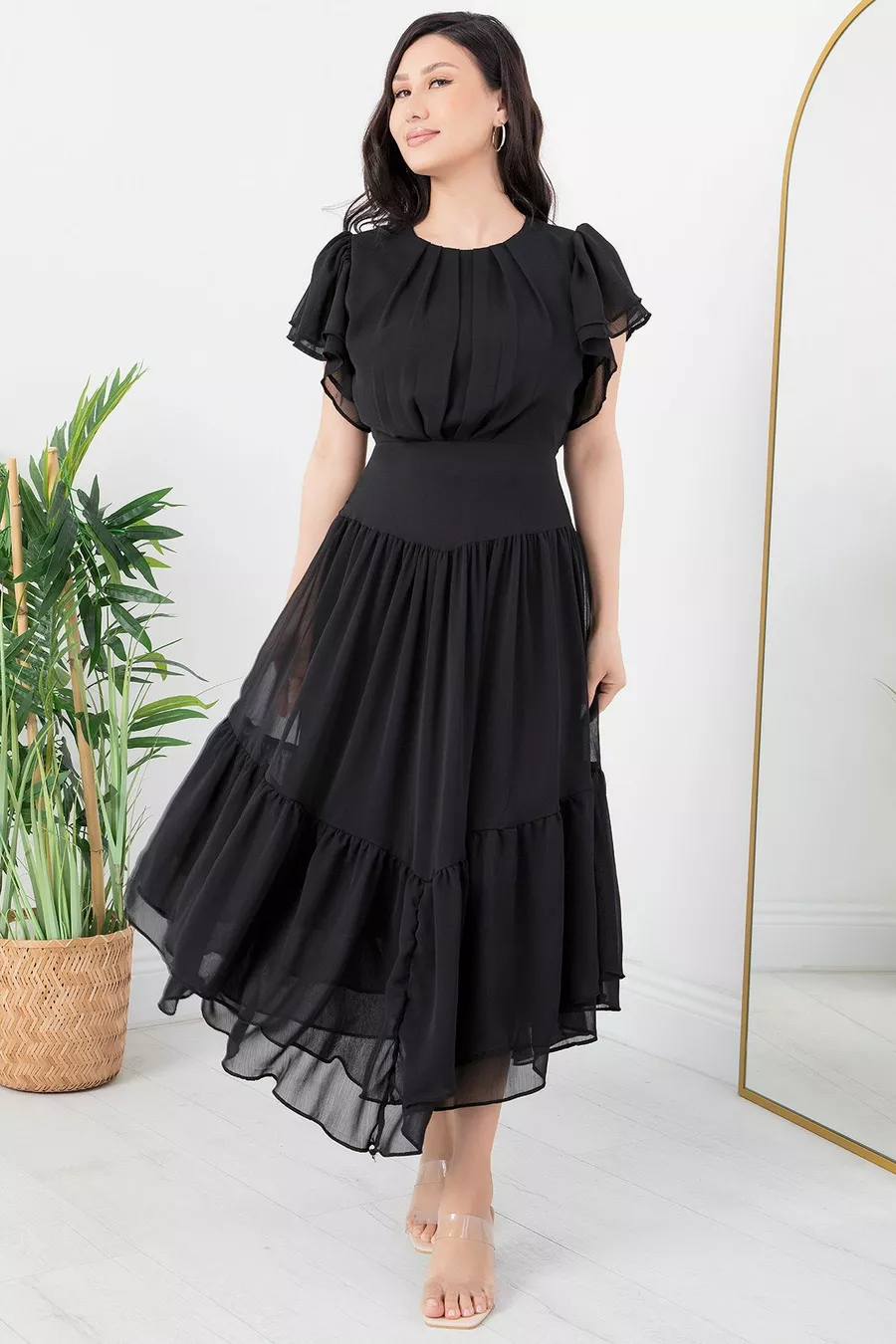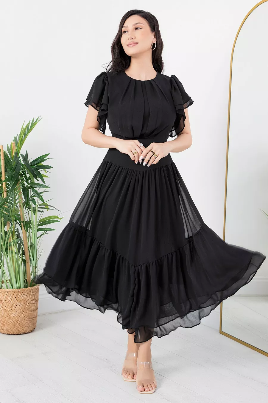 Chiffonkleid mit Rüschenärmeln