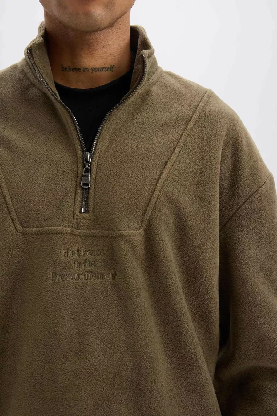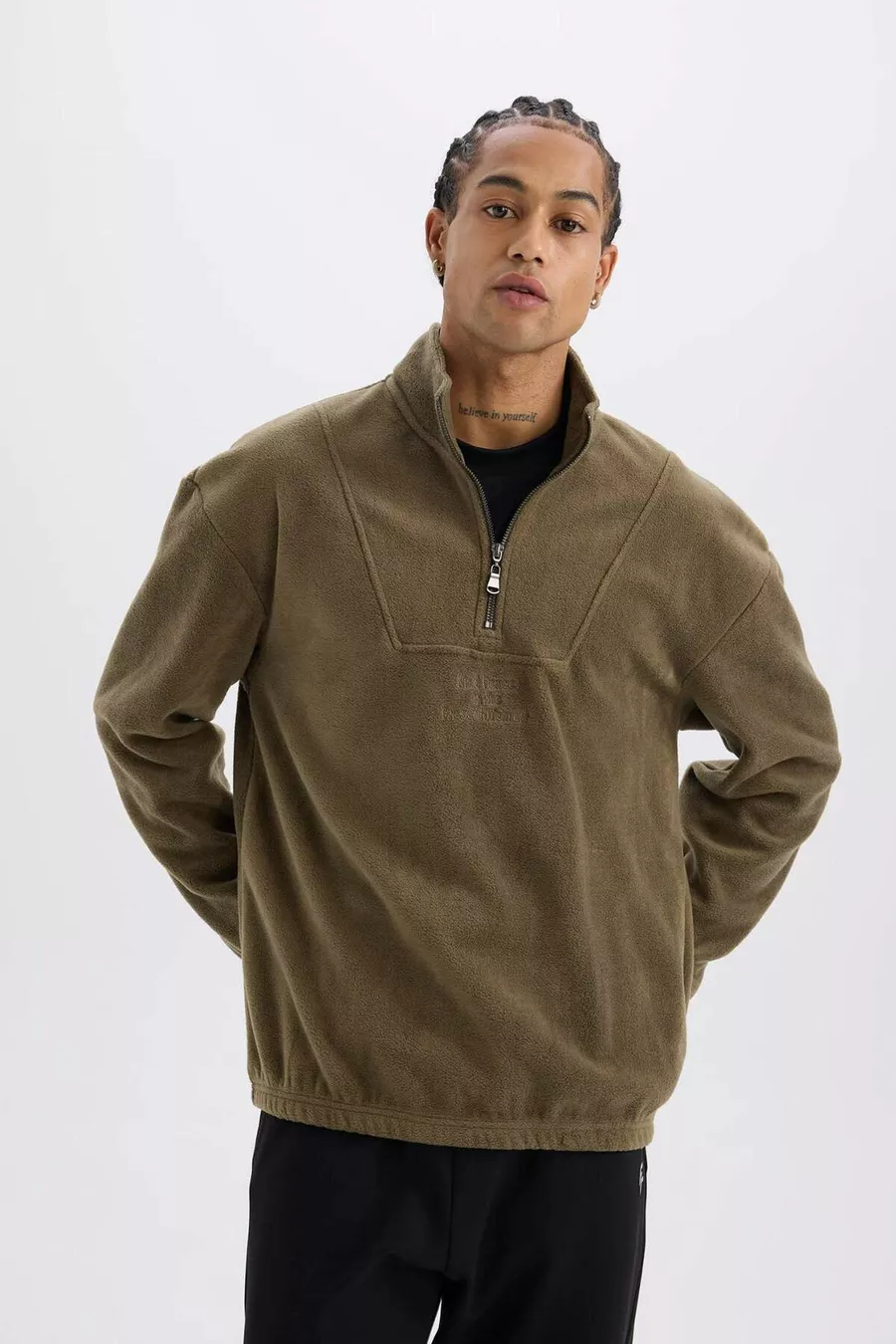 Comfort Regular Fit Bequemer Schnitt Stehkragen Bedrucktes Fleece-Sweatshirt AU