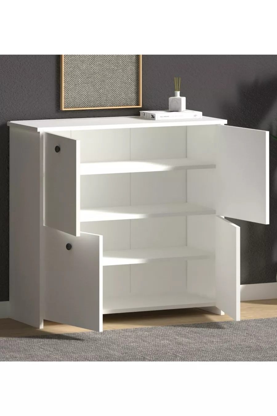 Material: Spanplatte Farbe: Weiß Höhe: 92 cm Breite: 92 cm Tiefe: 32 cm Garantie: 2 Jahre Stil: Klassisch Thema / Stil: Retro Herkunft: TR