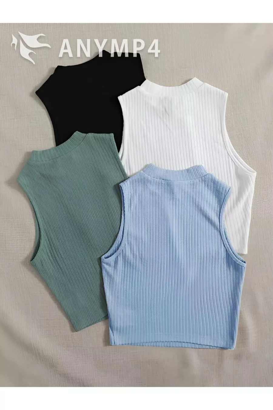Damen 4er Pack Rippstrick Crop-Top-Bluse aus % Baumwolle, ärmellos