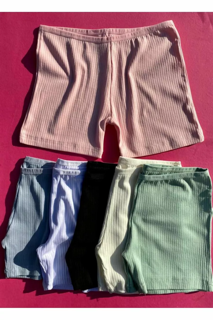 Damen 5er-Pack Baumwoll-Ripp-Shorts (Rosa, Schwarz, Weiß, Apfelgrün und Blau)