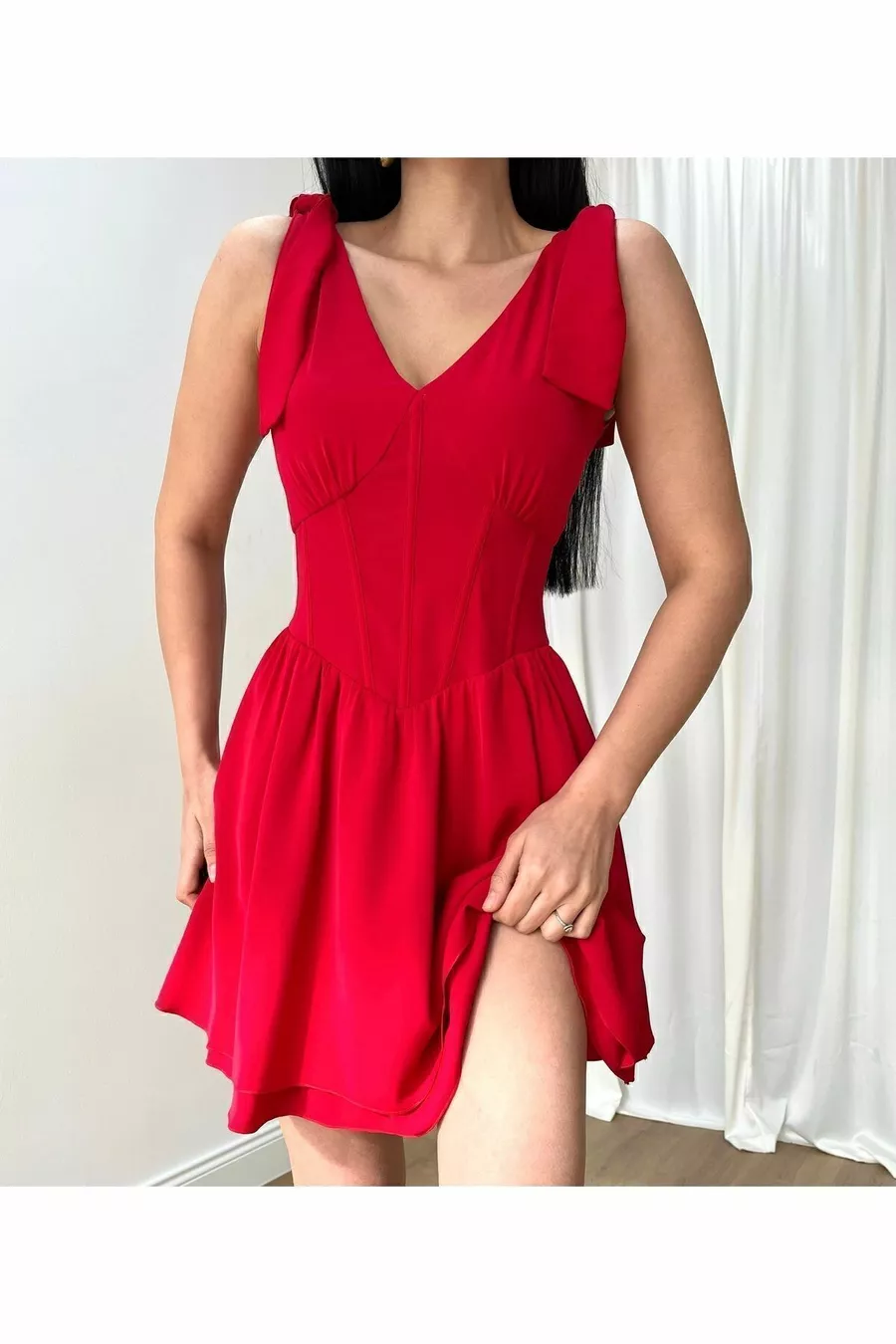 Dieses Produkt wird von \xa0 Misscix Fashion\xa0 versendet. Es gibt weniger als 5 Aktien, die zum Kampagnenpreis verkauft werden können. Der Verkäufer bestimmt den Verkaufspreis des von Ihnen geprüften Produkts. Ein Produkt kann von mehr als einem Verkäufer verkauft werden. Die Verkäufer der Produkte, die von mehr als einem Verkäufer zum Verkauf angeboten werden, werden nach dem von ihnen festgelegten Preis, den Verkäuferbewertungen, dem Lieferstatus, den Werbeaktionen in den Produkten, ob der Versand kostenlos ist oder nicht und ob die Produkte mit schneller Lieferung geliefert werden können, dem Lagerbestand und den Kategorien der Produkte eingestuft. Es können maximal \xa010 Stück dieses Produkts bestellt werden.\xa010 Einheiten können über Queenmadam bestellt werden.\xa0Dieses Limit gilt nicht für Firmenbestellungen, und für Firmenaufträge können unterschiedliche Limits festgelegt werden. Kostenlose Rücksendung innerhalb von 15 Tagen. Klicken Sie auf \xa0, um weitere Informationen zu erhalten. "Das Minikleid mit einem ausgestellten Rock mit V-Ausschnitt und drapiertem V-Ausschnitt hat eine vollständige Passform. Optionales Stoffeinfassungsdetail an den Schultergurten. Es hat ein V-förmiges Dekolleté auf der Rückseite und einen Reißverschluss auf der Rückseite. Der Saum ist Fold Detailed, die Länge des Kleides beträgt 80cm. Taille für Größe S: 66cmBrust 80 cm Taille für Größe M: 70cmBüste 84 cm Taille für Größe L: 74cmBrust 88 cm Das Model auf dem Bild ist 1,68 groß, 52 kg schwer und trägt auf dem Bild ihre eigene Größe S. Das Produkt zeigt sich nicht im Inneren. Geeignet für die Frühjahr-Sommer-Saison. Das Produkt ist leicht glänzend. Sie können es problemlos für stilvolle Abende, Verlobungen, Hochzeiten, Partys, Abschlussfeiern, Abschlussbälle, Cocktails, Firmentreffen und Smart Casual verwenden."