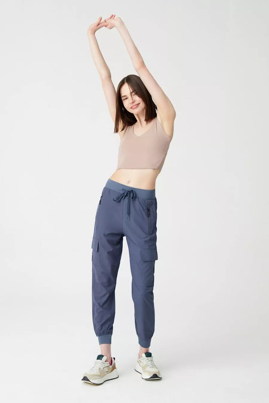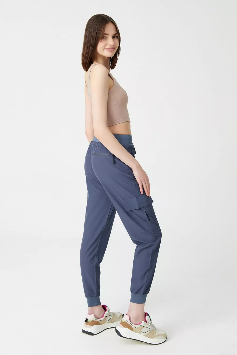 Damen-Anthrazit-Joggerhose mit Cargo-Taschen, Bund- und Saumbündchen mit Gummizug