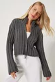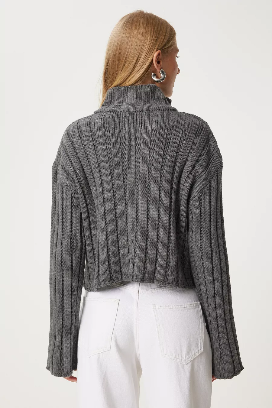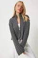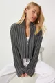 Damen Anthrazit Reißverschluss Stehkragen Strickjacke