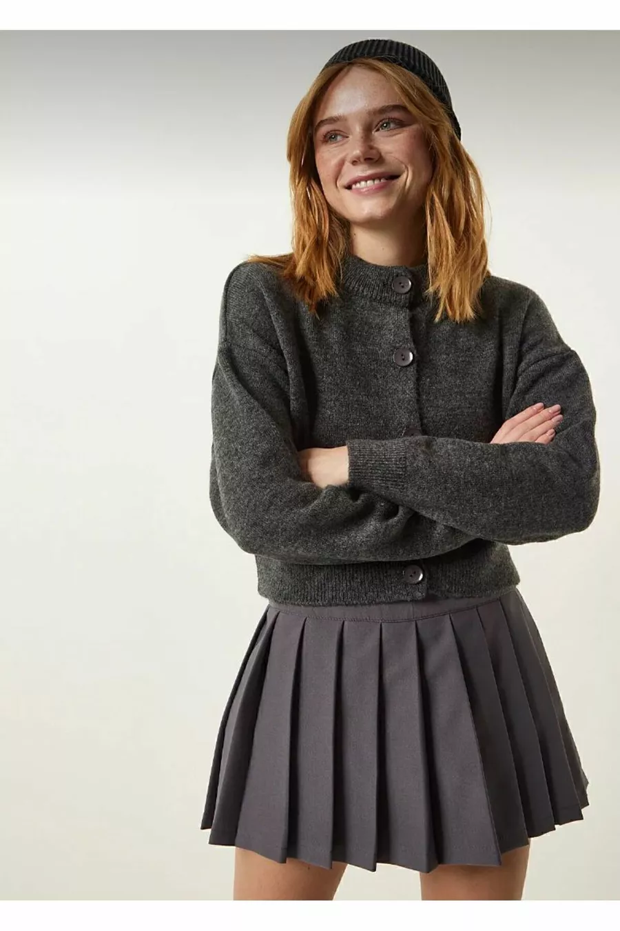 Material: Acryl Ärmellänge: Langarm Muster: Uni Passform: Regular Stoffart: Strick Farbe: Grau Kragenart: Rundhalsausschnitt Produktdetails: Mit Knöpfen Produkttyp: Uni Taschen: Ohne Taschen Ärmellänge: Lang Kollektion: Basic Stärke: Mittel Länge: Regular Silhouette: Basic Gelegenheit: Casual/Alltag Besondere Merkmale: Waschbar Druck-/Sticktechnik: Ohne Druck Verschlussart: Mit Knöpfen Anzahl der Teile: 1 Zielgruppe: Büro Nachhaltigkeitsdetail: Ja Webart: Einlagig Gürtel-/Taillenzustand: Ohne Gürtel Materialzusammensetzung: 100% Acryl Waschanweisung: Mit ähnlichen Farben waschen. Saison: Ganzjährig Herkunft: TR
