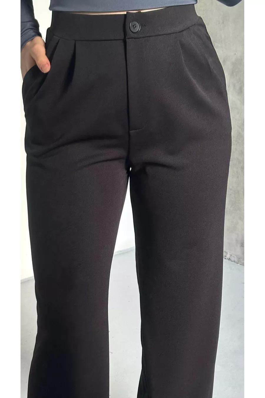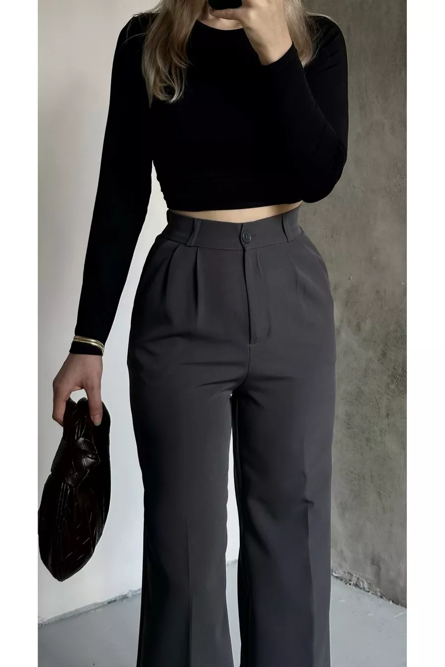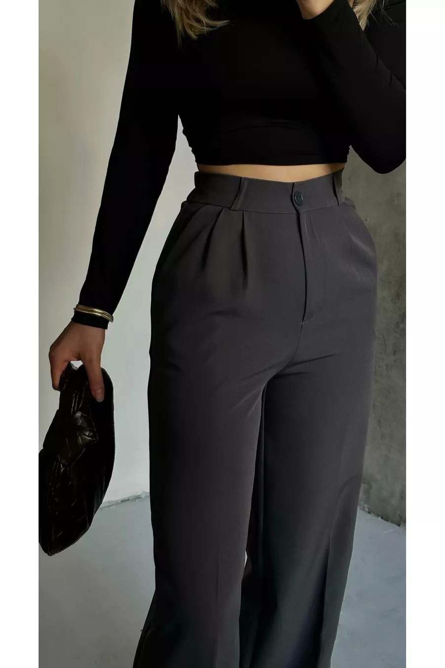 Damen Anthrazit Hohe Taille Weite Palazzo-Hose