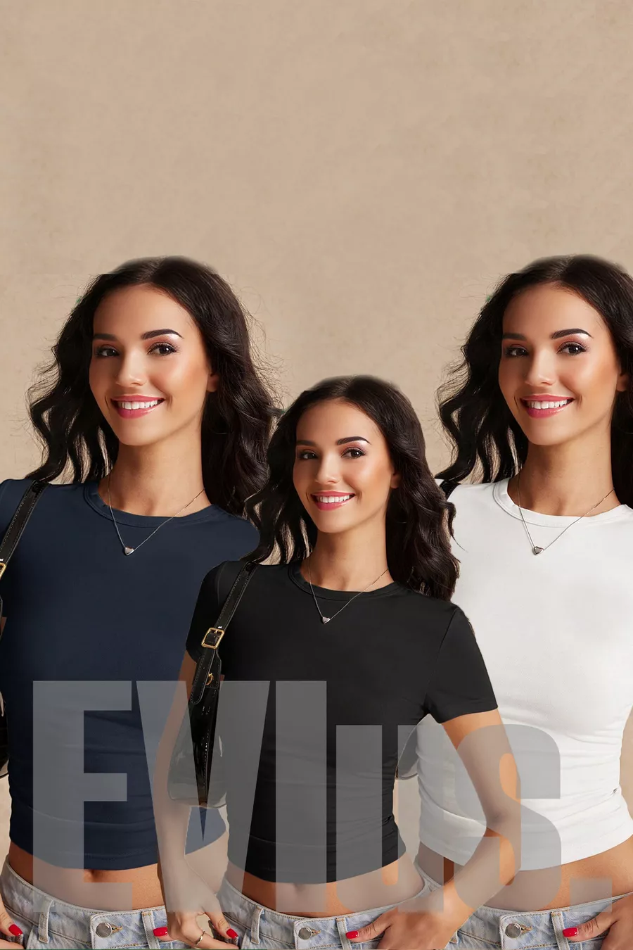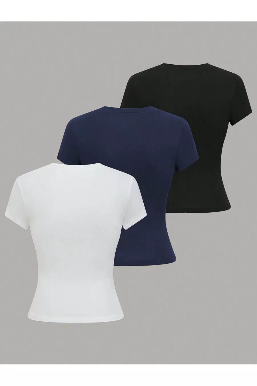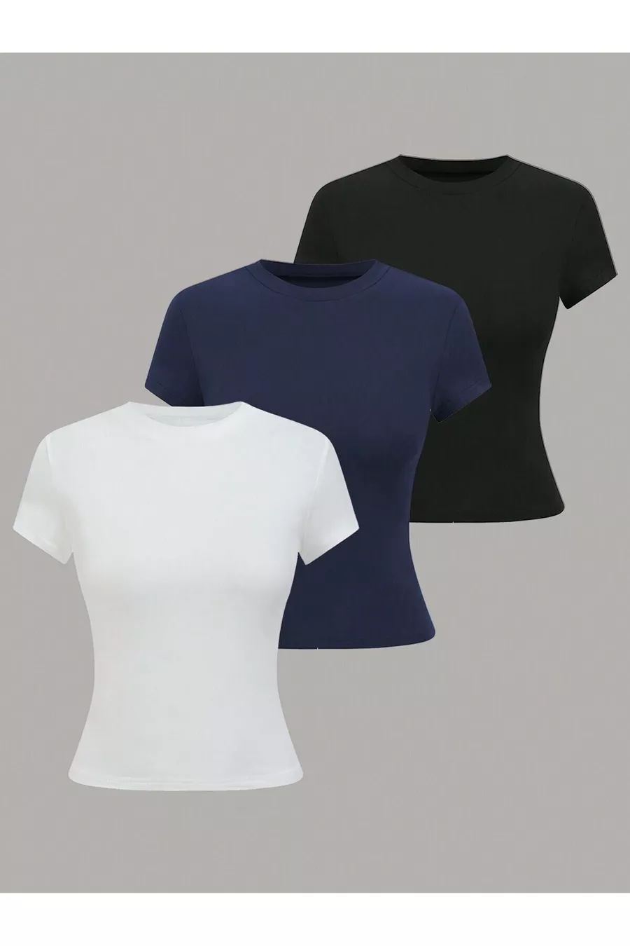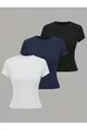 Damen Basic T-Shirt mit Rundhalsausschnitt, Slim Fit, 3er-Set