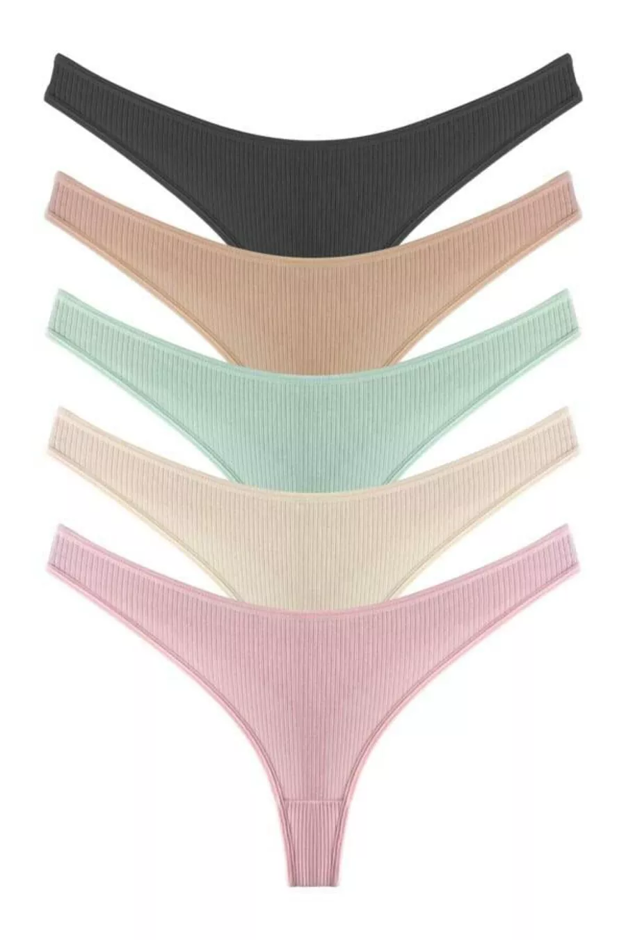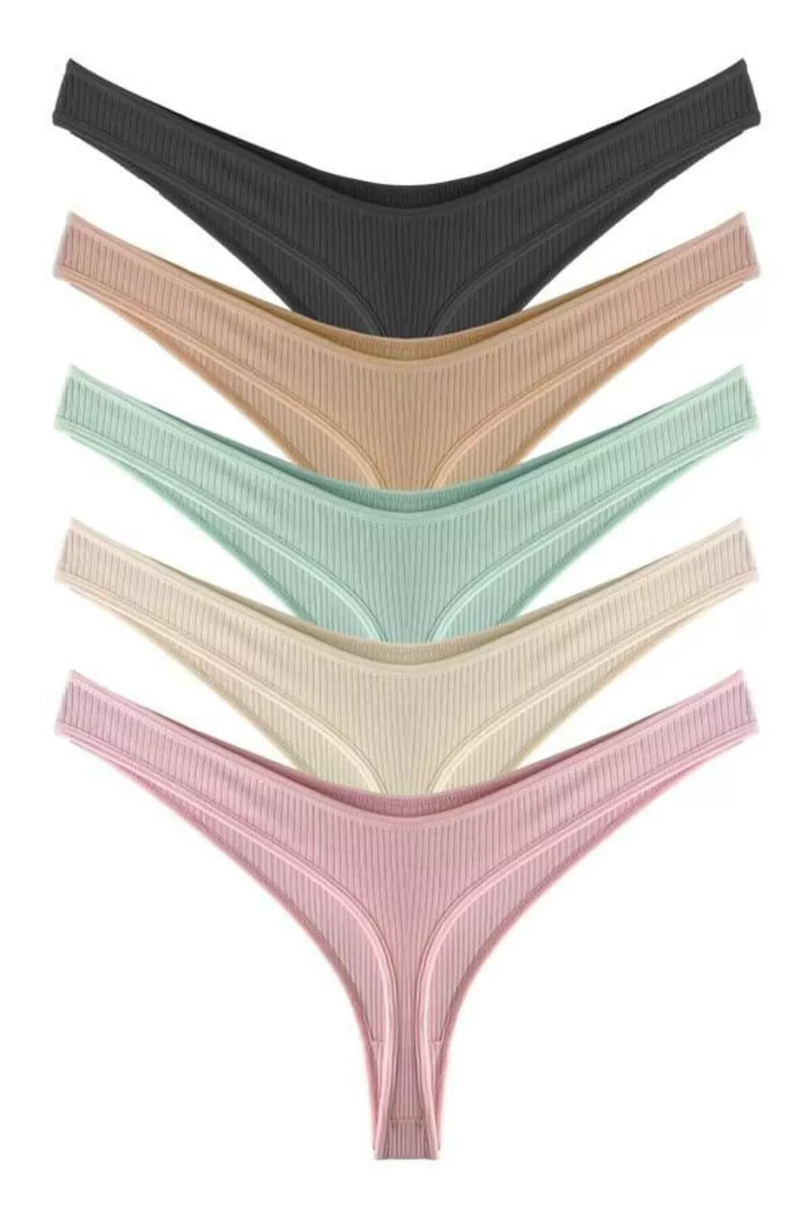 Damen Baumwolle und Lycra Rippstrick Tanga Slip 5er-Pack