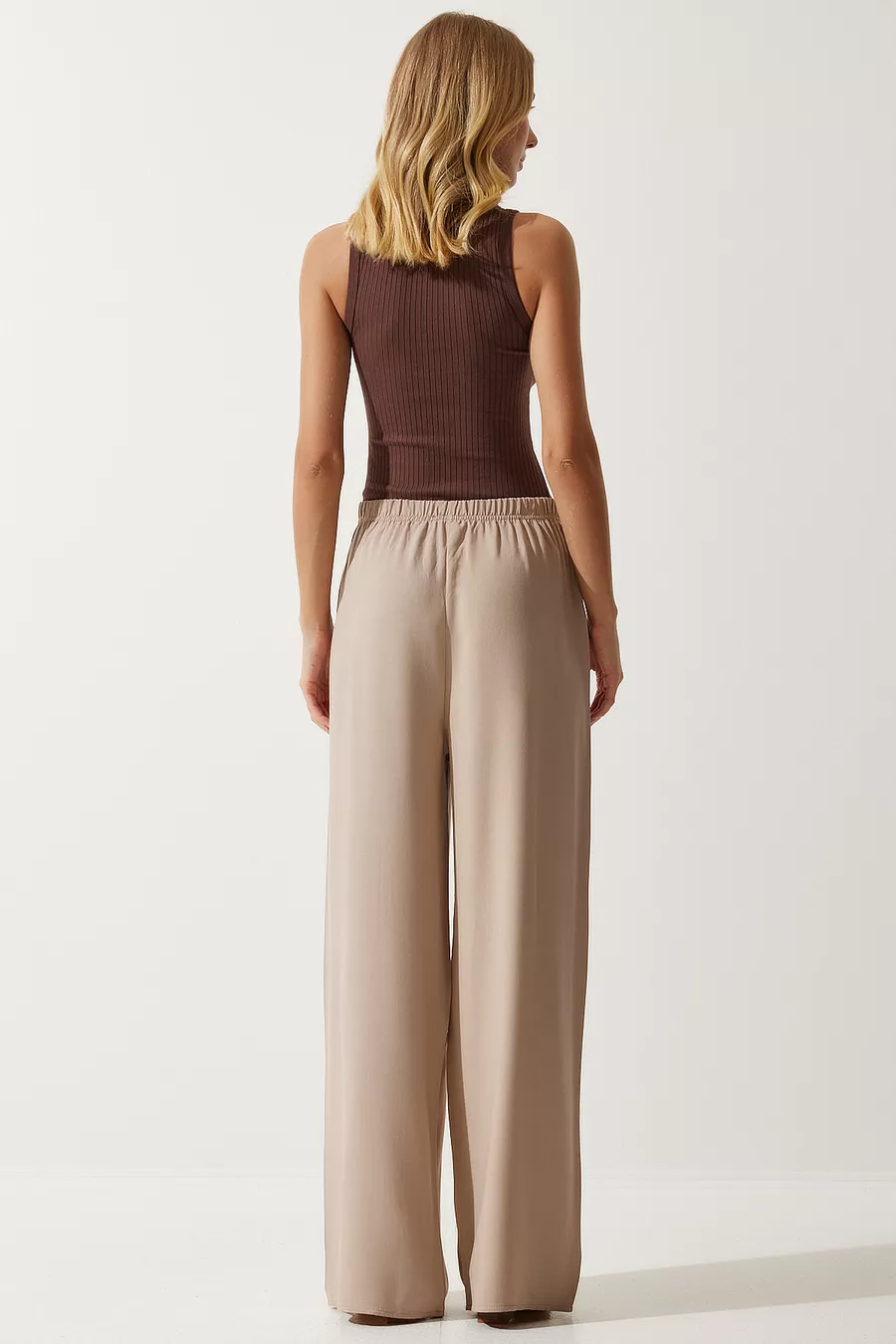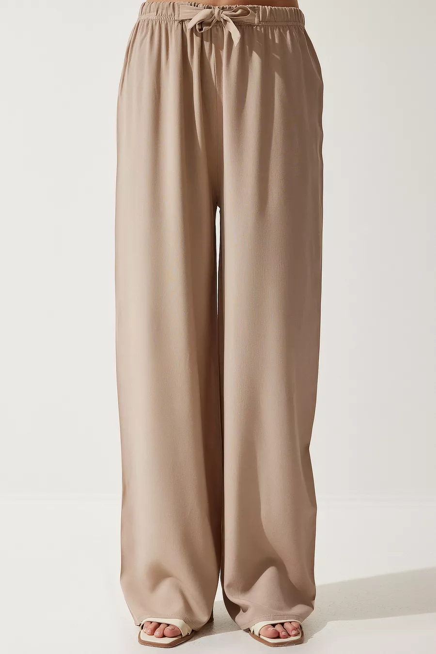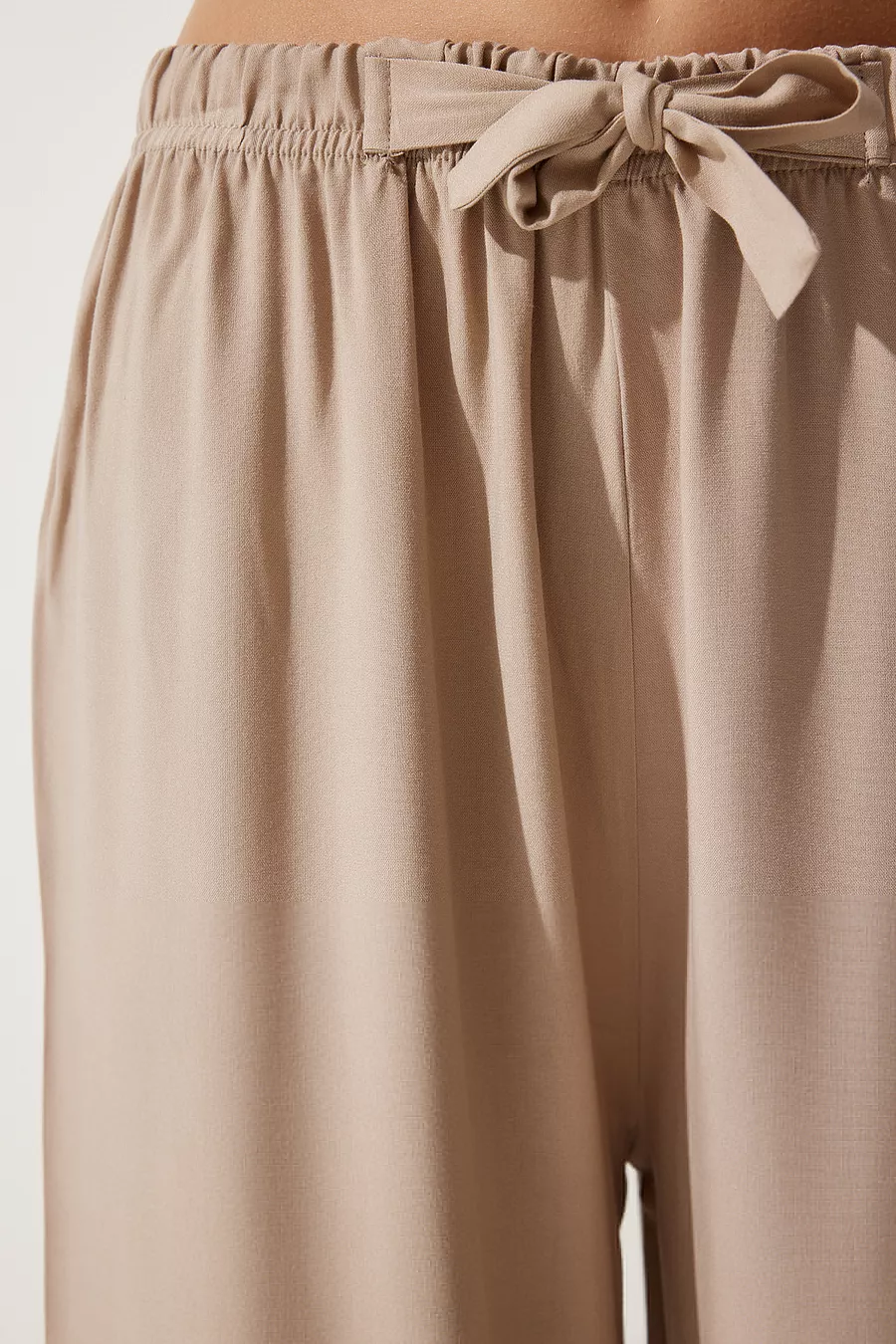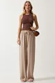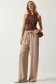 Damen Beige Sommerliche Viskose Palazzo Hose