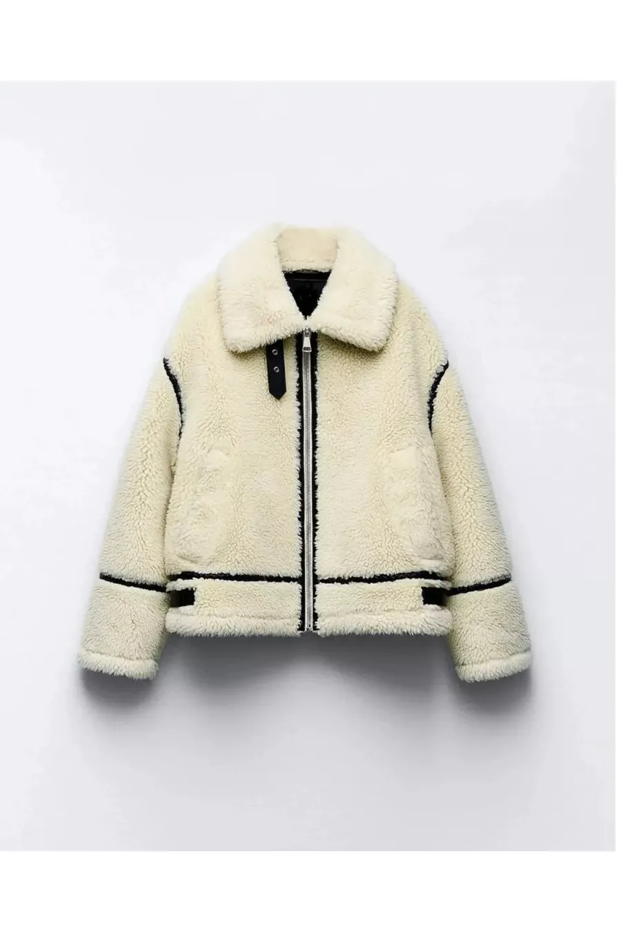 Damen Beige Premium Designer Plüschjacke mit Reißverschluss