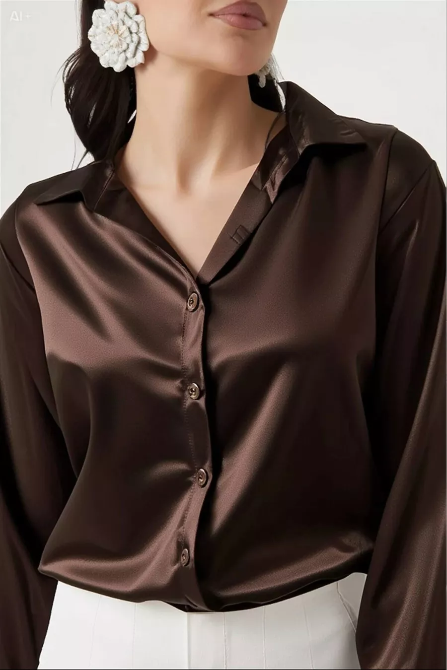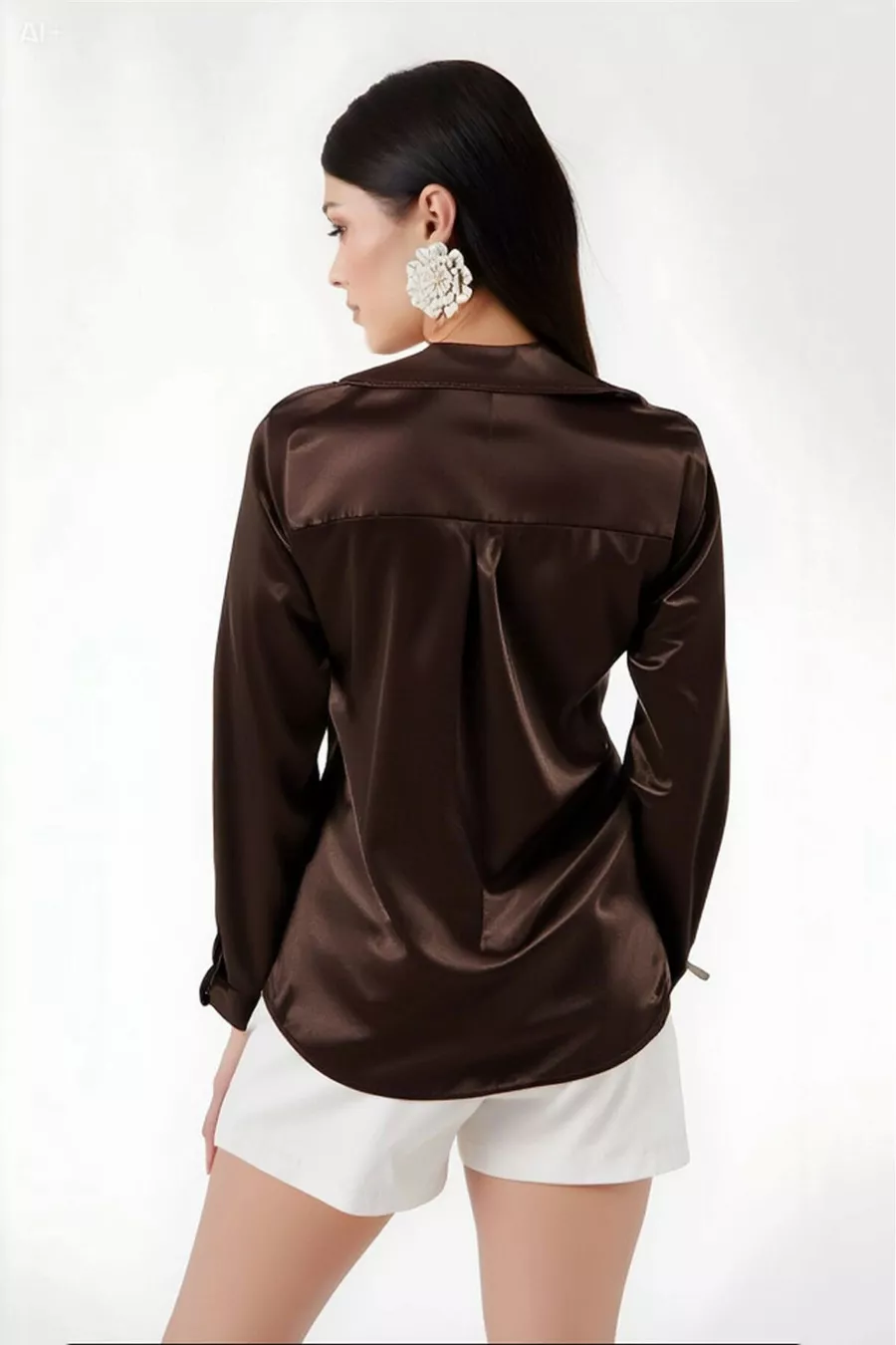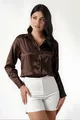 Damen Braun Locker fallende Bluse mit Satin-Oberfläche