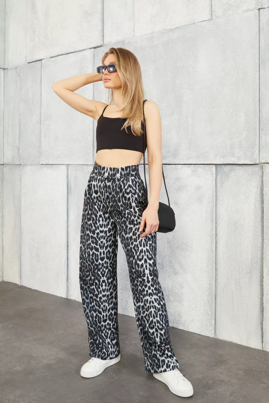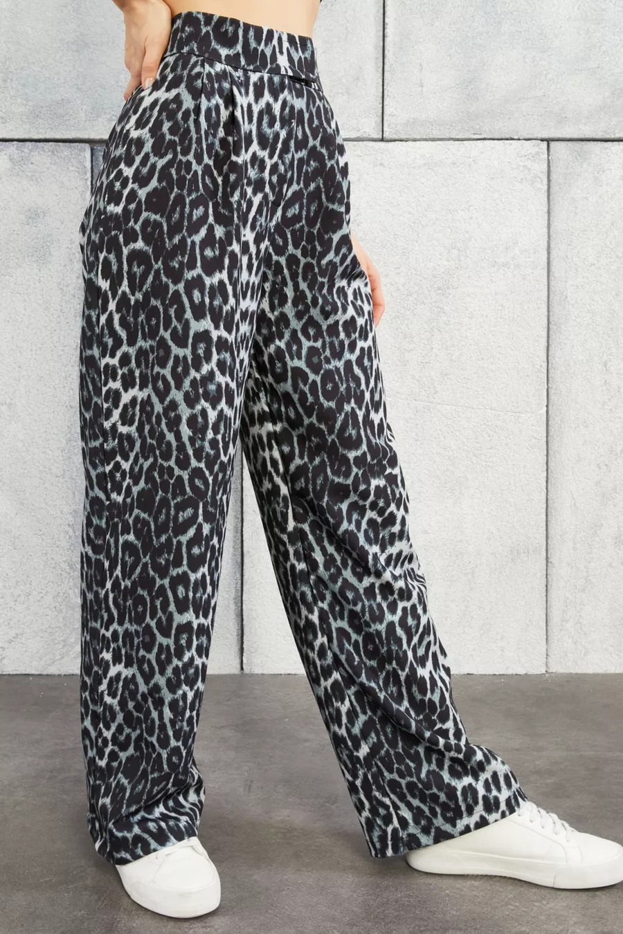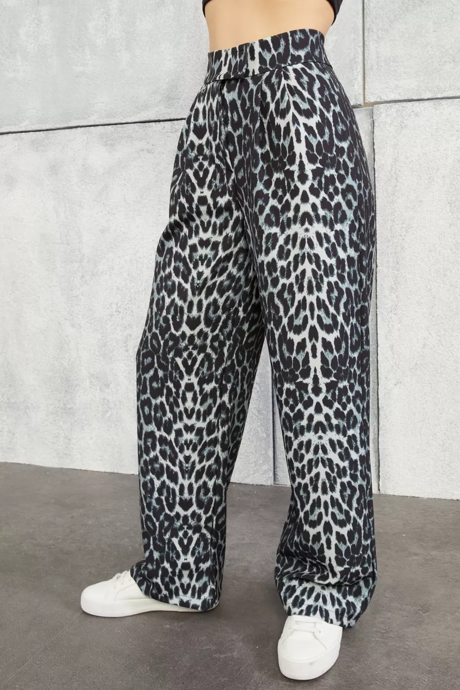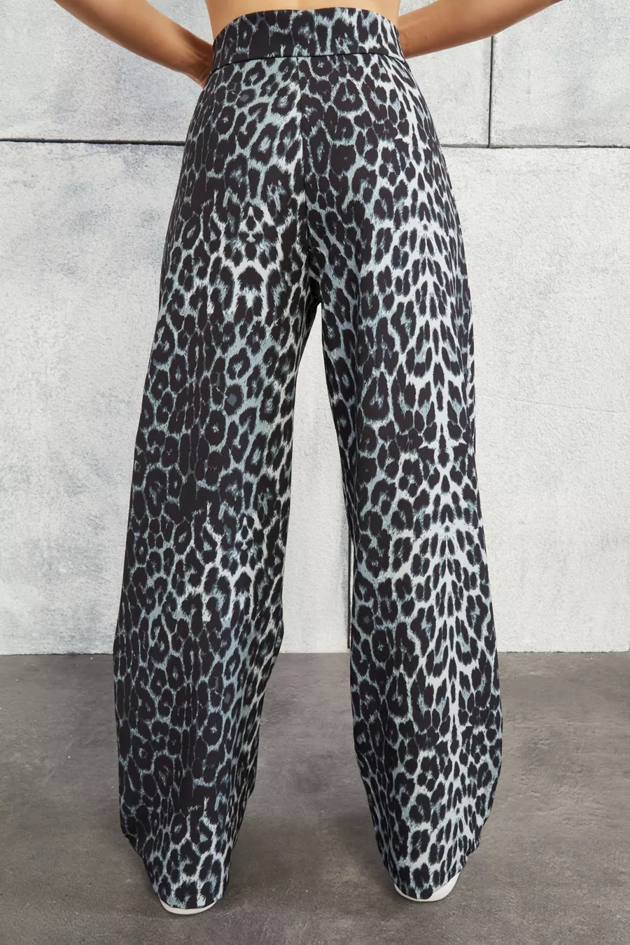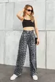 Damen Hohe Leoparden-Taille Palazzo-Hose mit Klettverschluss