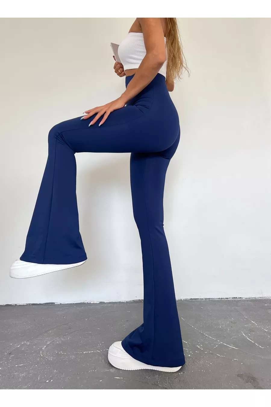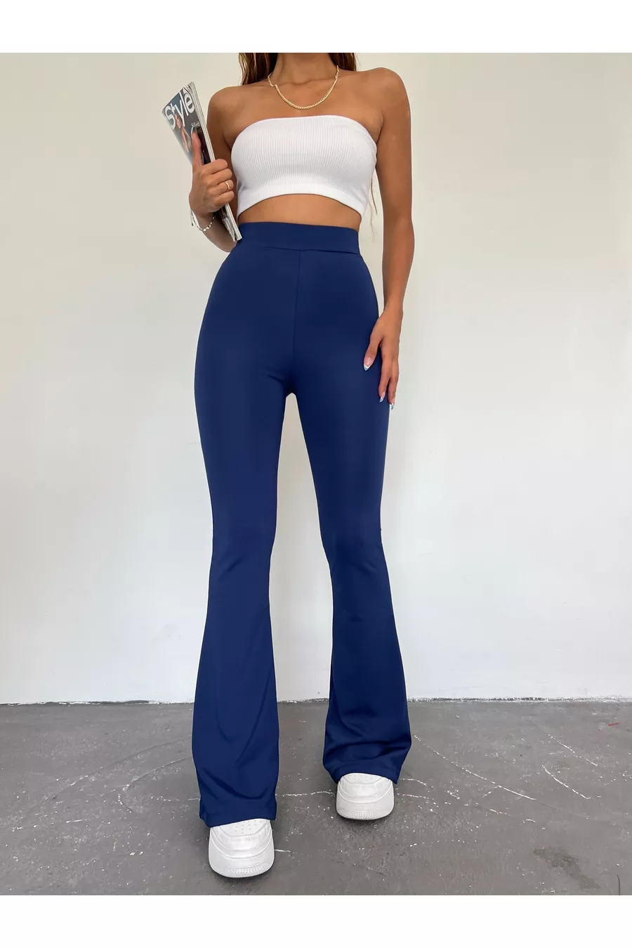 Material: Baumwolle - Polyester - Elastan Stoffart: Gewebe Hosenbein-Typ: Schlaghose Bund: Hoher Bund Muster: Uni Farbe: Marineblau Tasche: Ohne Taschen Produktdetails: Mit Gummizug Kollektion: Young Dicke: Mittel Futter: Ohne Futter Länge: Lang Silhouette: Slim Anlass: Alltag Schnitt: Slim Fit Zusätzliches Merkmal: Elastisch Webart: Taucherstoff/Scuba Zielgruppe: Young Druck/Sticktechnik: Ohne Druck Gürtel/Gürtelzustand: Ohne Gürtel Nachhaltigkeitsdetails: Nein Materialzusammensetzung: 78% Polyester, 22% Elastan (Lycra) Waschanleitung: Typ 1 Saison: Alle Saisons Herkunft: TR Verpackungszustand: Keine Box