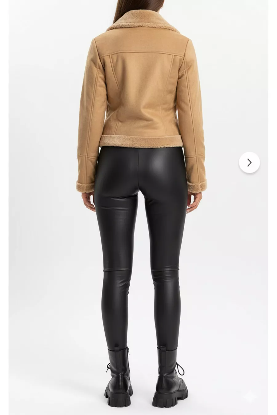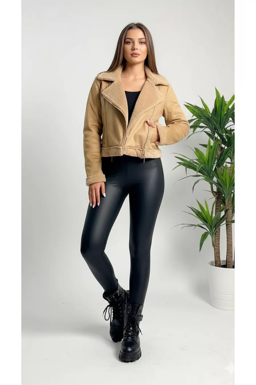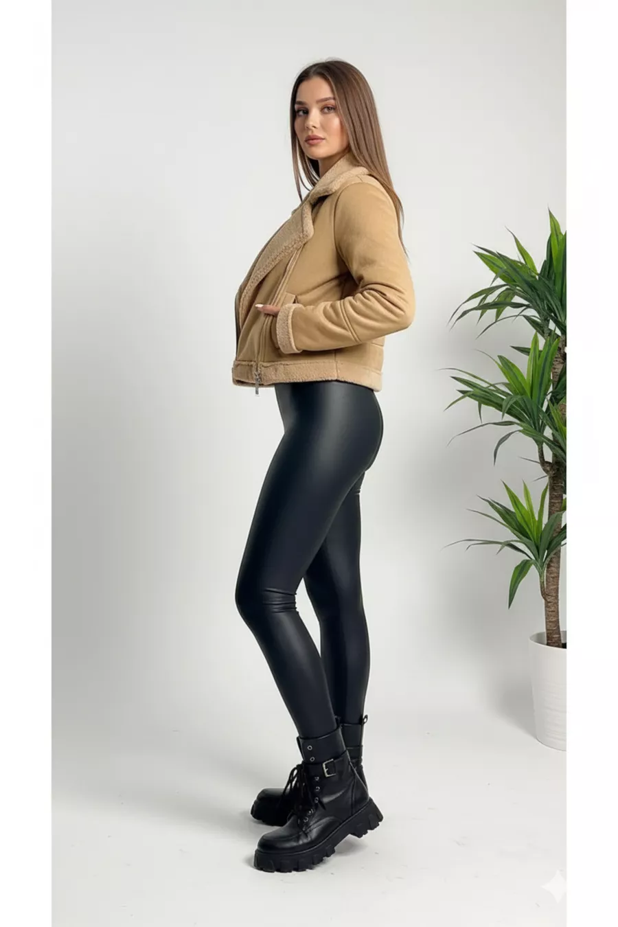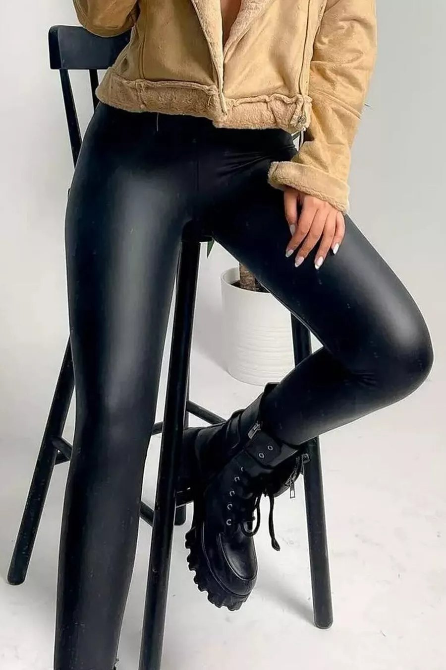 Damen Hohe Taille Lederleggings mit Futter aus schwarzem Sherpa und Wolle, Vollständig Geschnitten, Elastisch