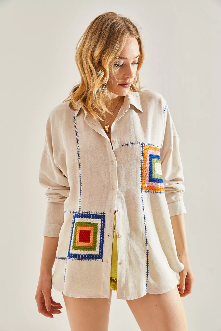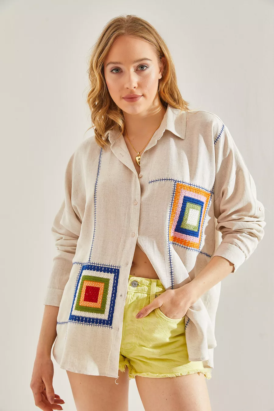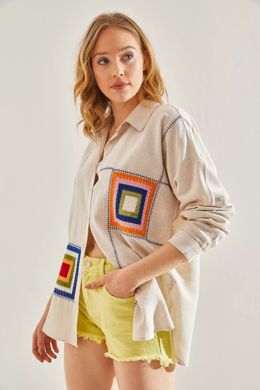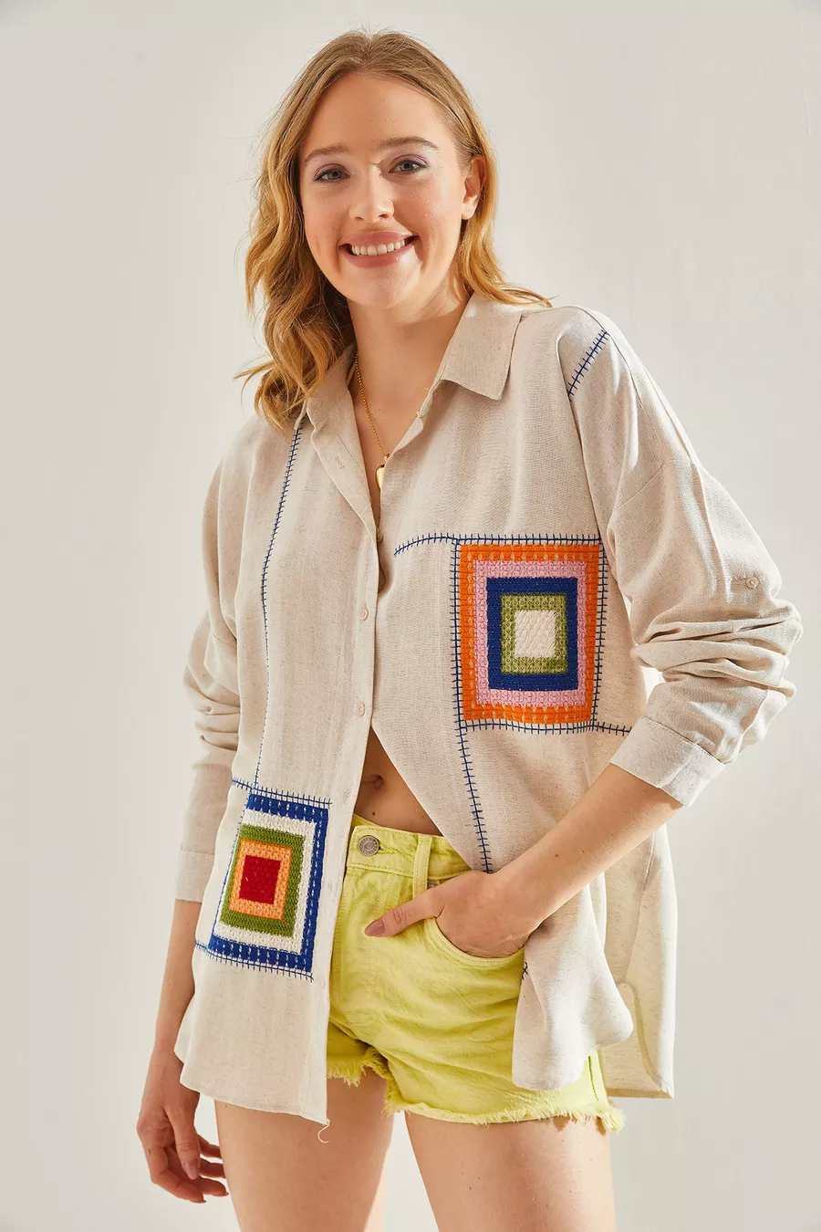 Muster: Gemustert Schnitt: Oversize Kragenart: Hemdkragen Stoffart: Gewebt Ärmelform: Langarm Farbe: Beige Material: Leinen Verschlussart: Mit Knöpfen Tasche: Ohne Taschen Ärmellänge: Lang Länge: Regular Anlass: Trend Silhouette: Basic Zusätzliches Merkmal: Gemustert Webart: Leinen Druck-/Sticktechnik: Ohne Druck Nachhaltigkeitsdetail: Nein Gürtel-/Taillendetail: Ohne Gürtel Materialzusammensetzung: 100% Baumwolle Pflegehinweis: Type 0 Packungsinhalt: Einzelstück