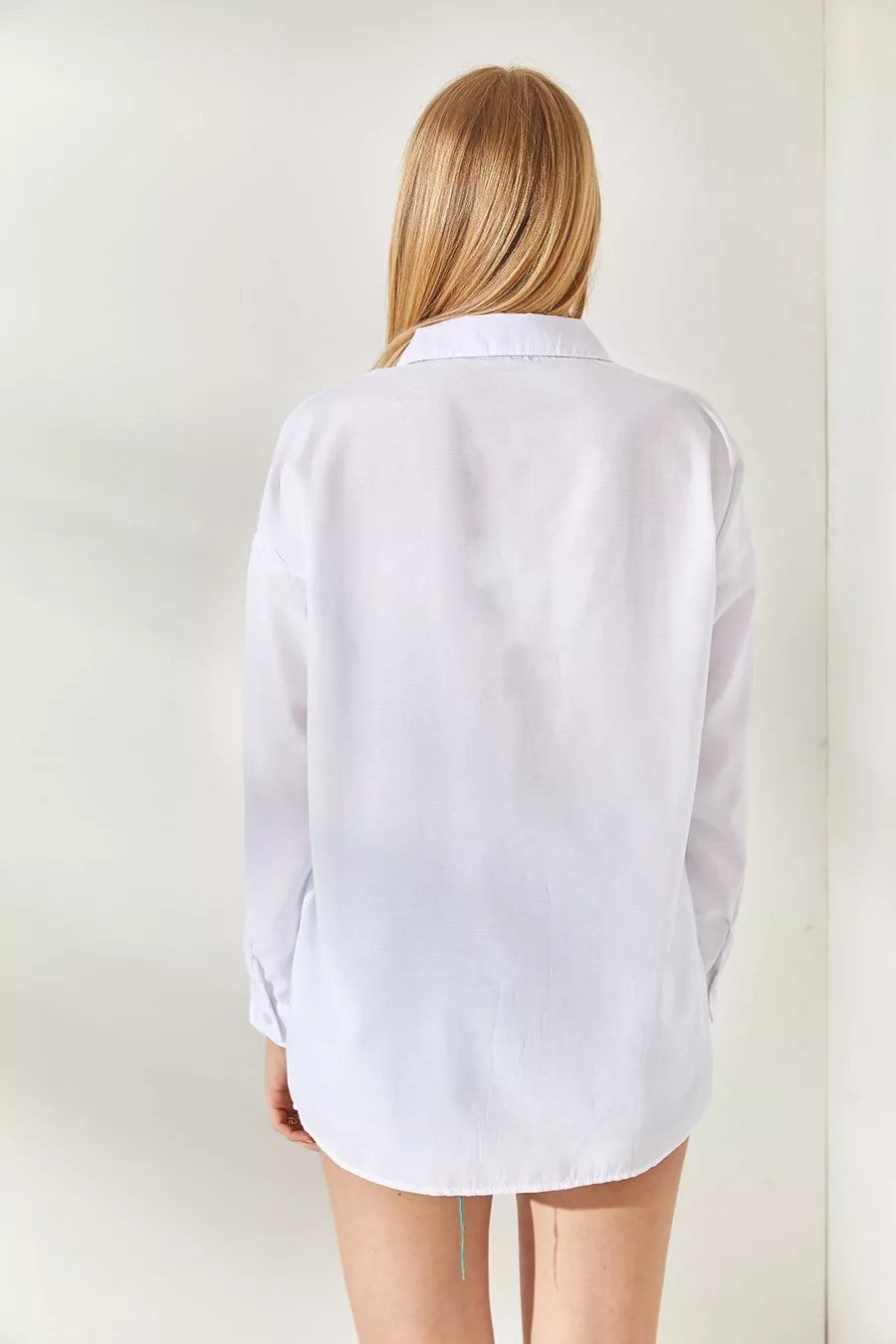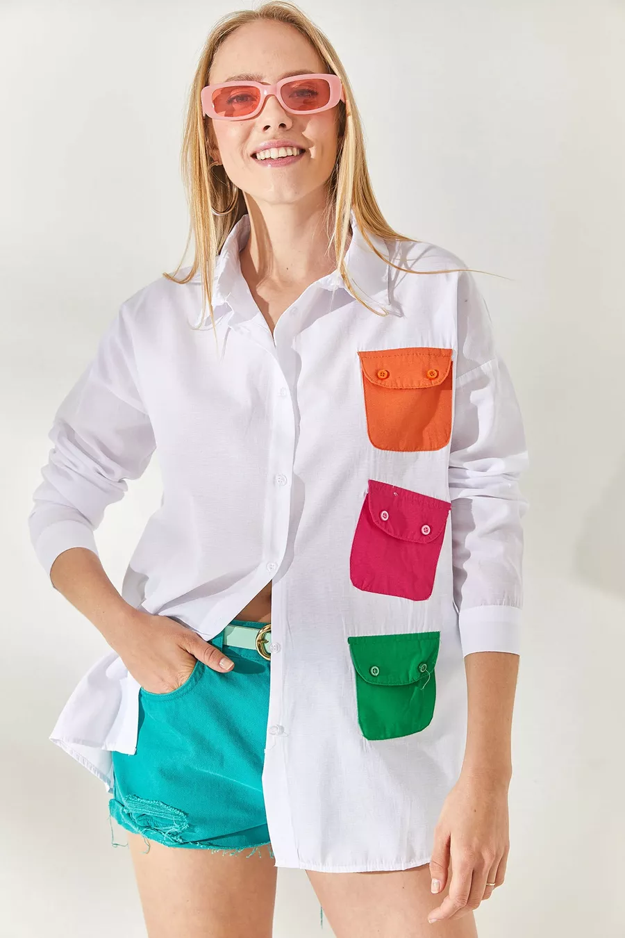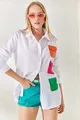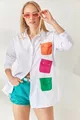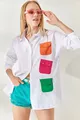 Damen Oversize-Hemd aus Webstoff mit taschen-Detail in Weiß-Fuchsia