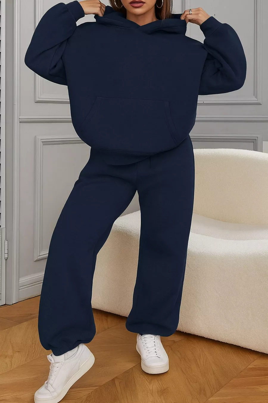 Damen Oversize Kapuzen-Sweatshirt und Jogginganzug Winter mit Baumwollfutter