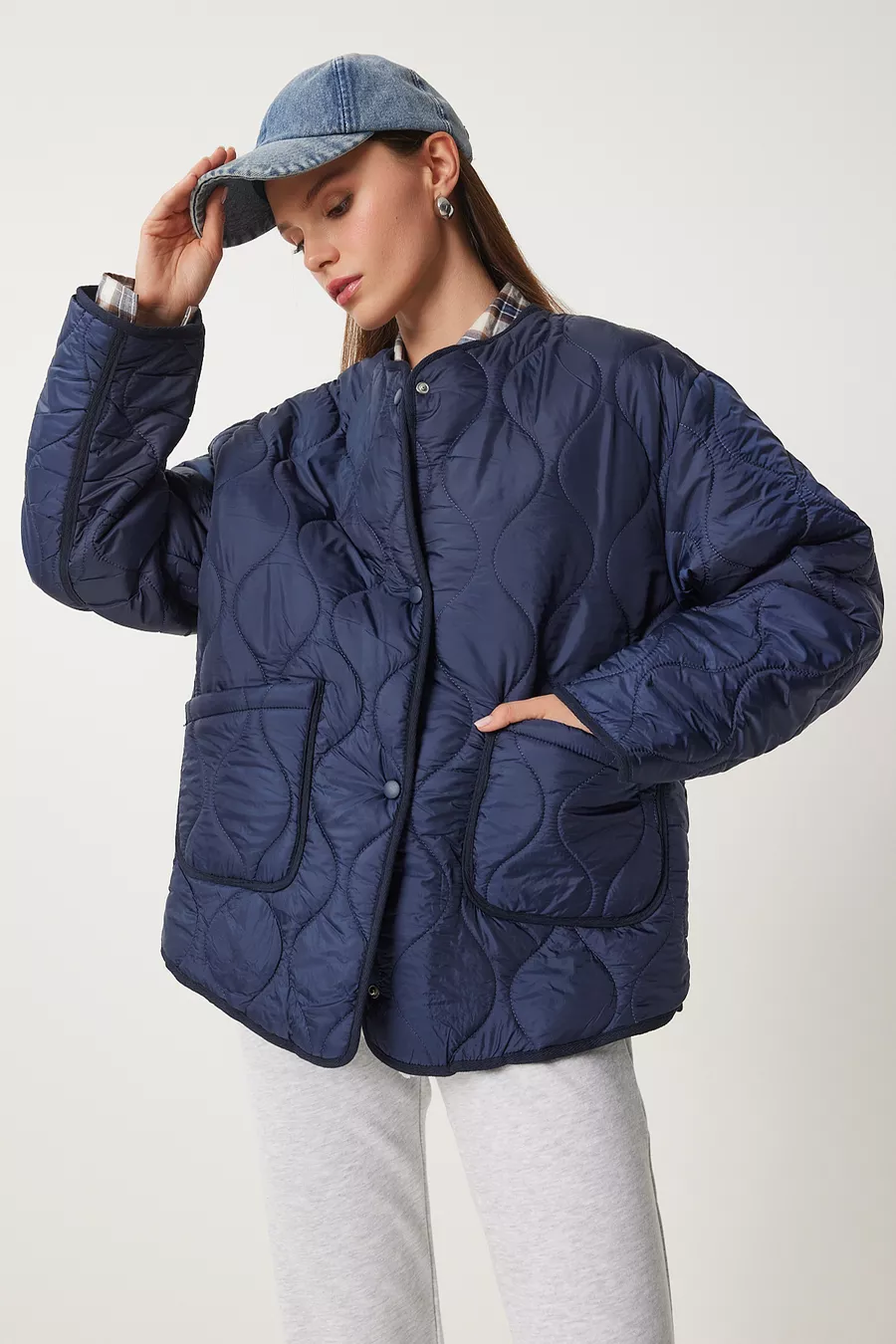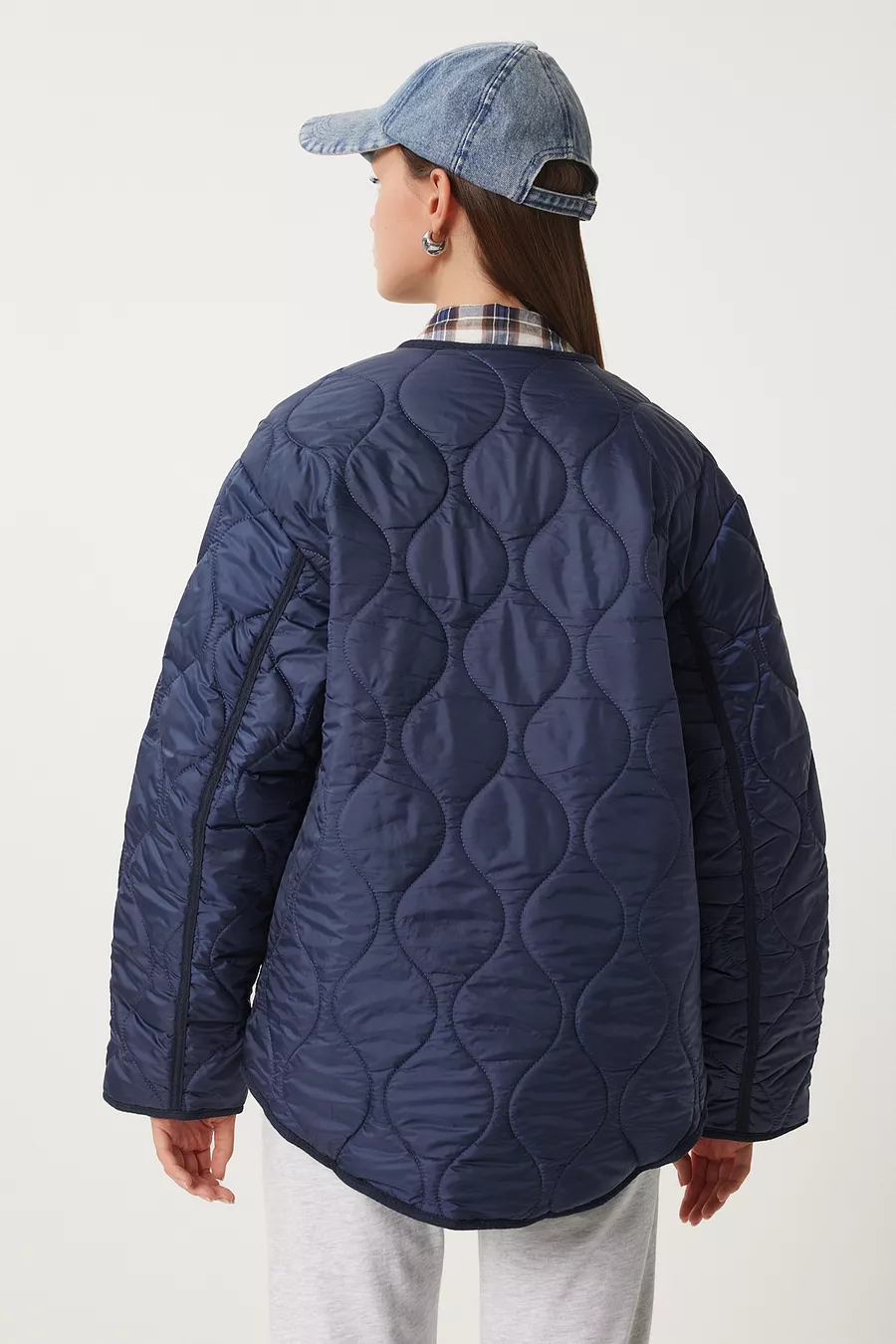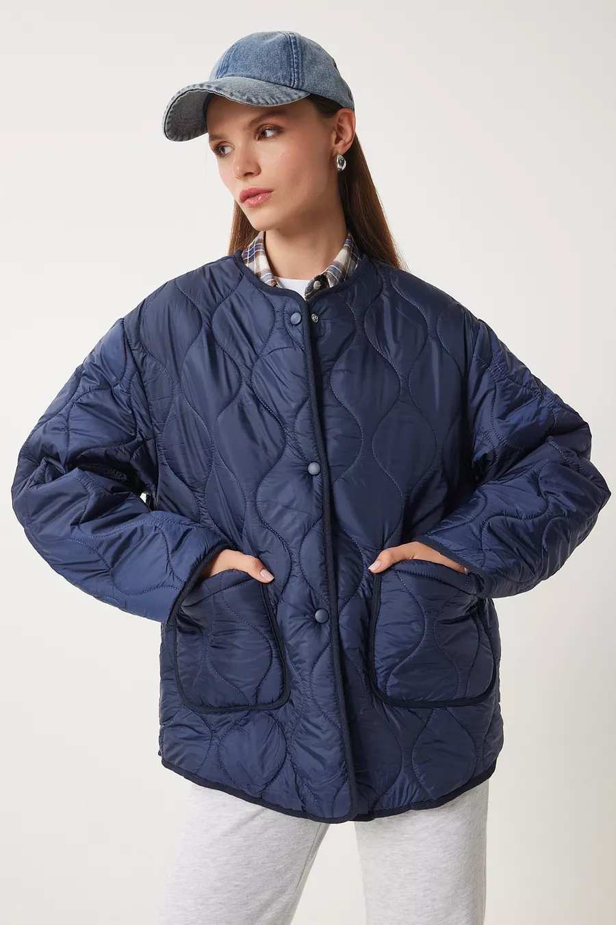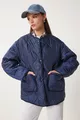 Damen Oversize Steppjacke mit Taschen in Marineblau