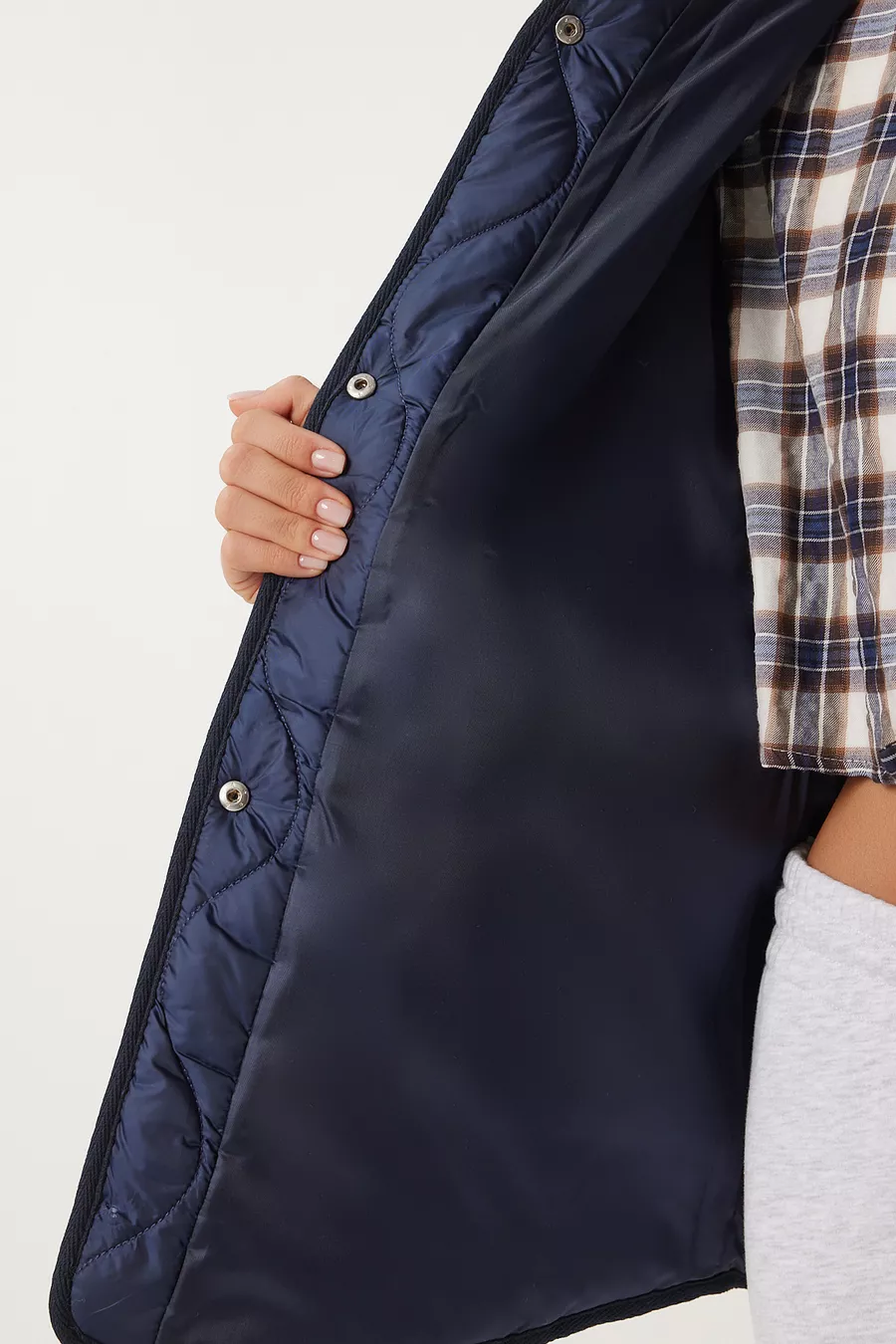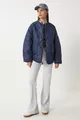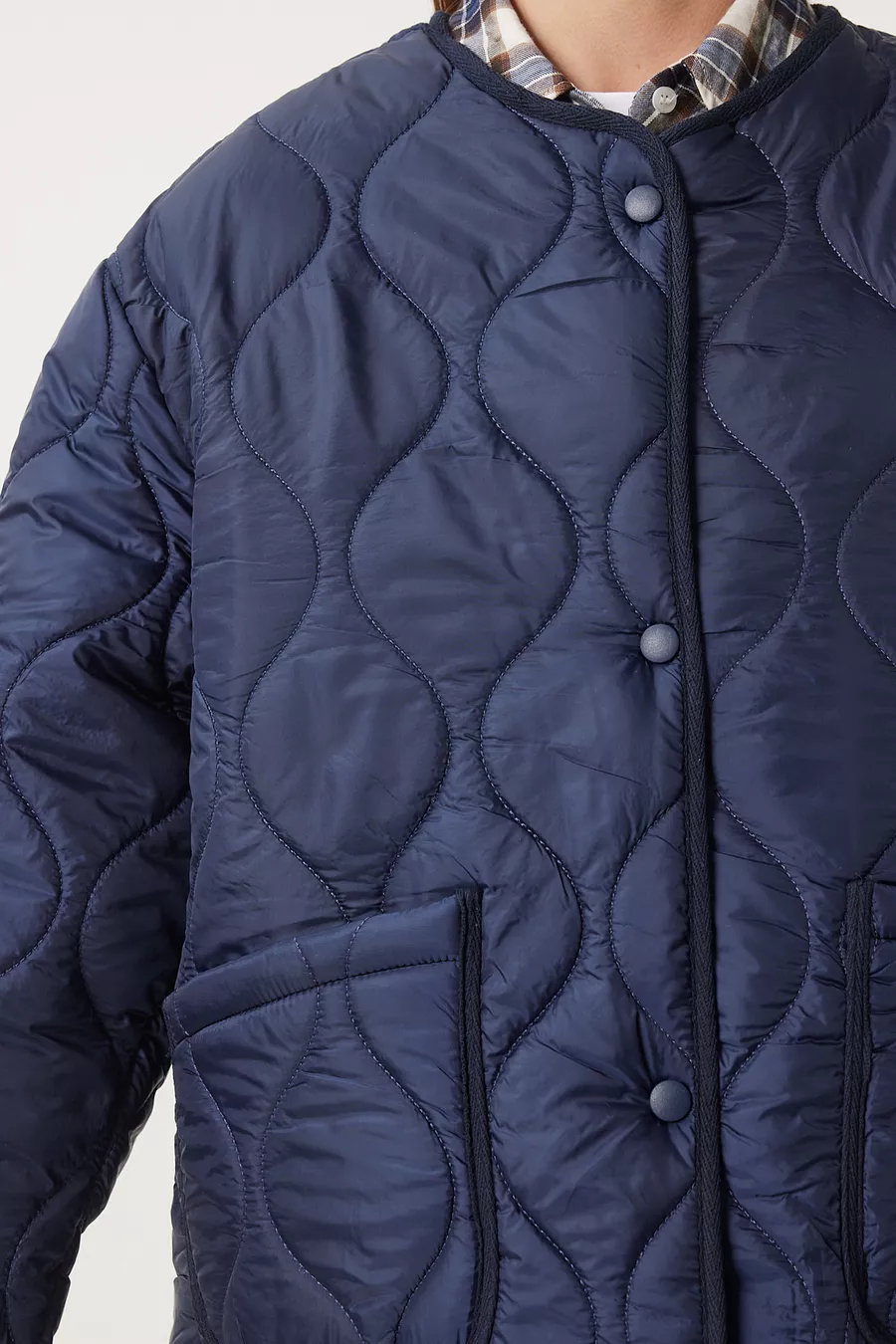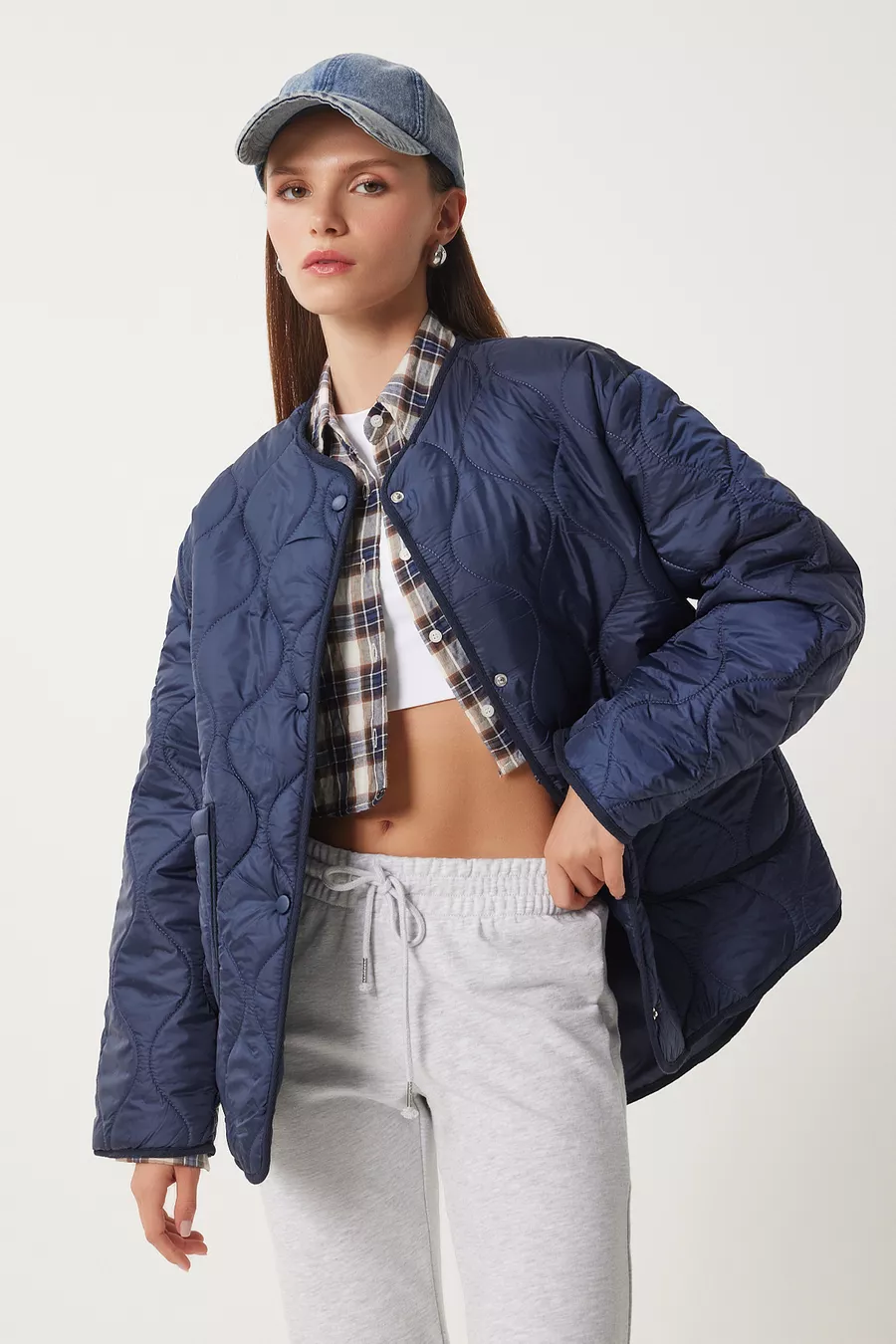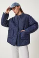 Damen Oversize Steppjacke mit Taschen in Marineblau