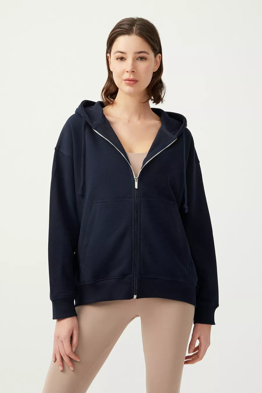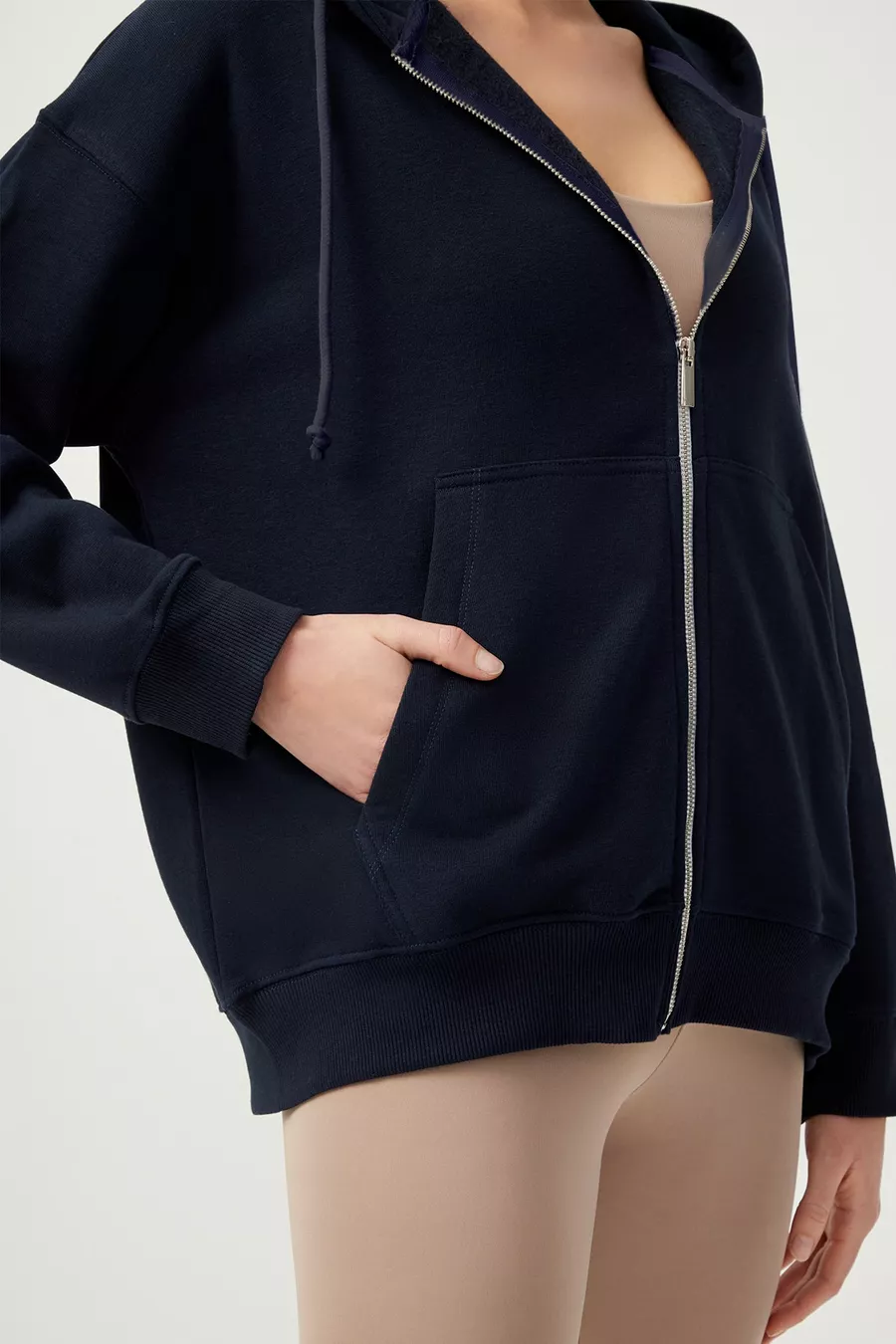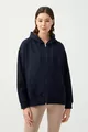 Damen Oversize Strick-Sweatshirt mit Kapuze, Fleece gefüttert und Reißverschluss, dunkelblau
