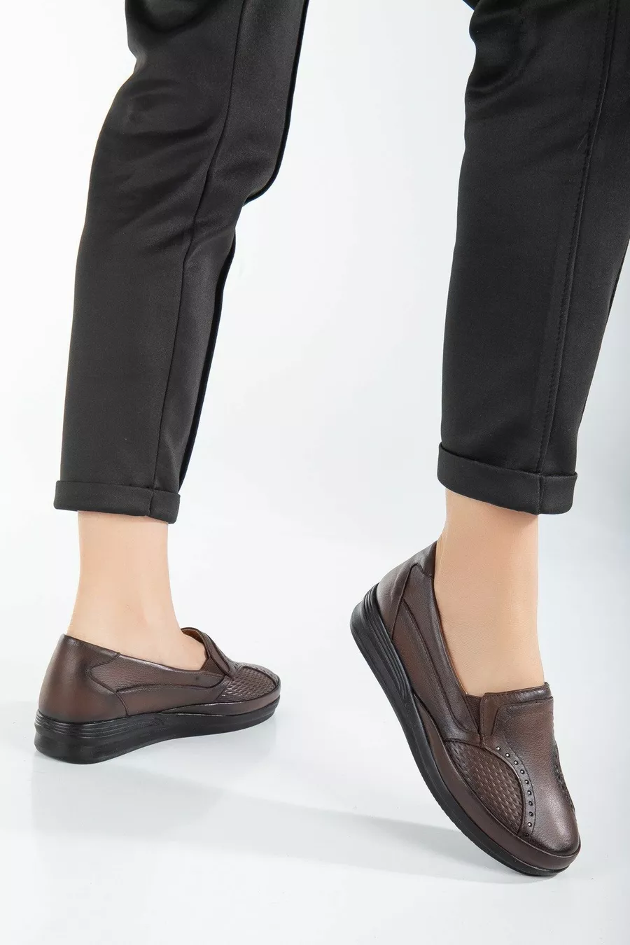 Damen Echtleder Full Orthopädic Stone bestickte bequeme Mom Schuhe ohne Absätze
