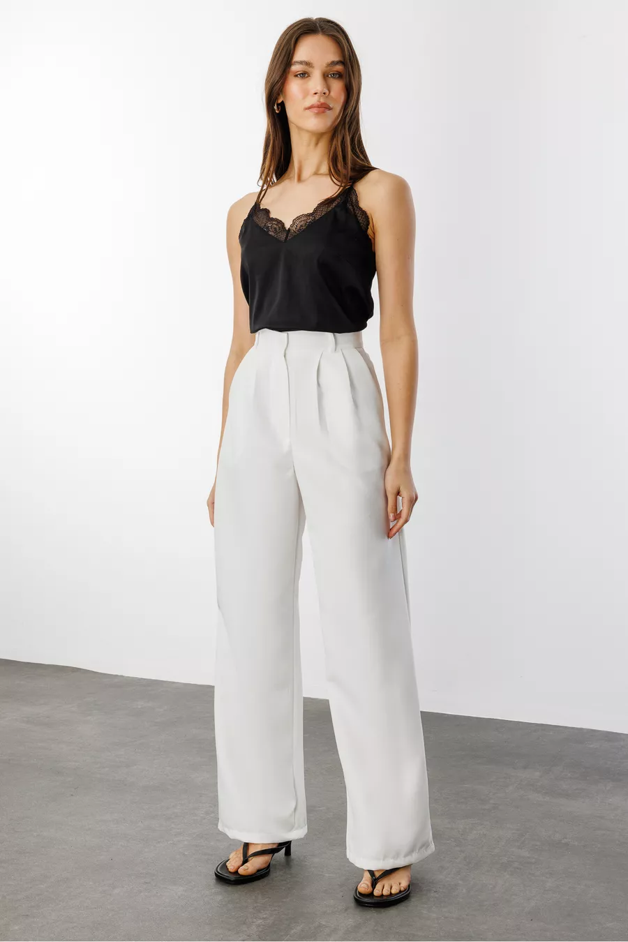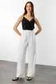 Material: Gewebt Stoffart: Nicht angegeben Hosensaum: Weit Bund: Hoher Bund Muster: Einfarbig Farbe: Weiß Tasche: Doppelte Tasche Produktdetails: Mit Knöpfen Kollektion: Basic Dicke: Mittel Futter: Ohne Futter Länge: Lang Silhouette: Wide Leg Gelegenheit: Casual/Alltag Schnitt: Mit Falten Zusätzliches Merkmal: Fusselt nicht Webart: Krepp Persona: Cool & Comfort Druck/Sticktechnik: Ohne Druck Gürteldetails: Ohne Gürtel Nachhaltigkeitsdetails: Nein Materialzusammensetzung: 100% Polyester Waschanleitung: Bei 30 Grad waschen Saison: Alle Jahreszeiten Herkunft: TR Verpackung: Keine Box Verschlussart: Halb verdeckter Knopf Packungsinhalt: Einzelstück