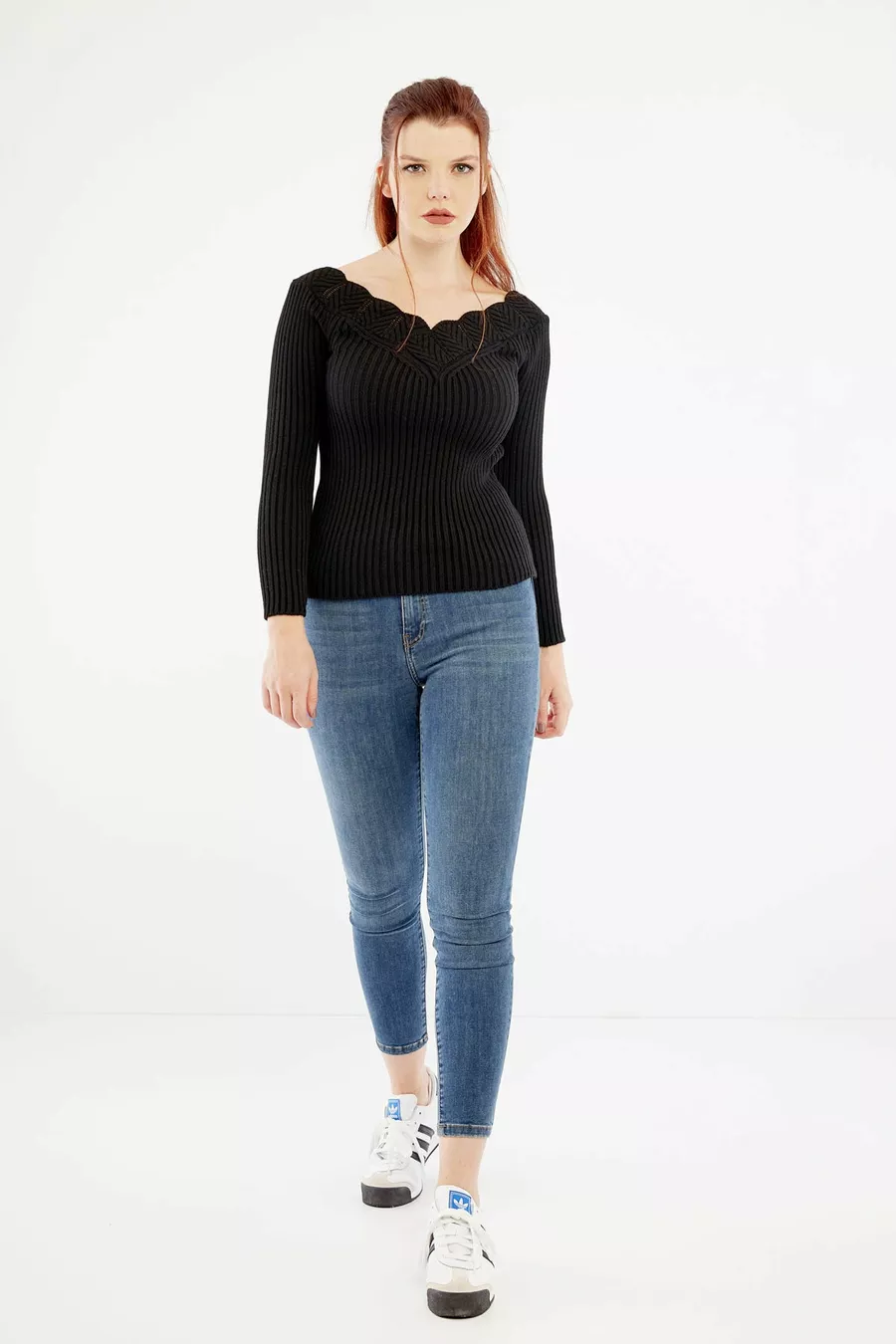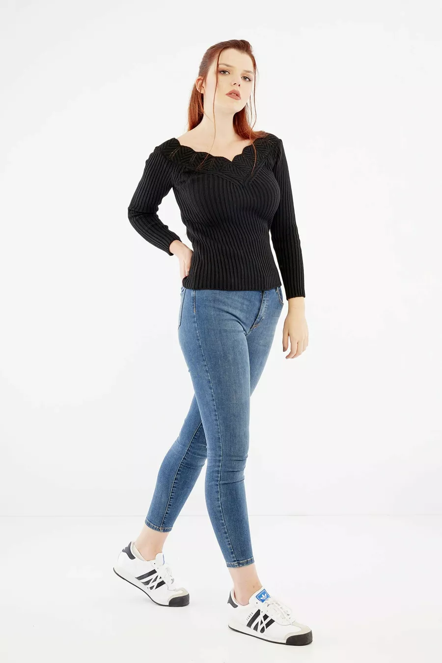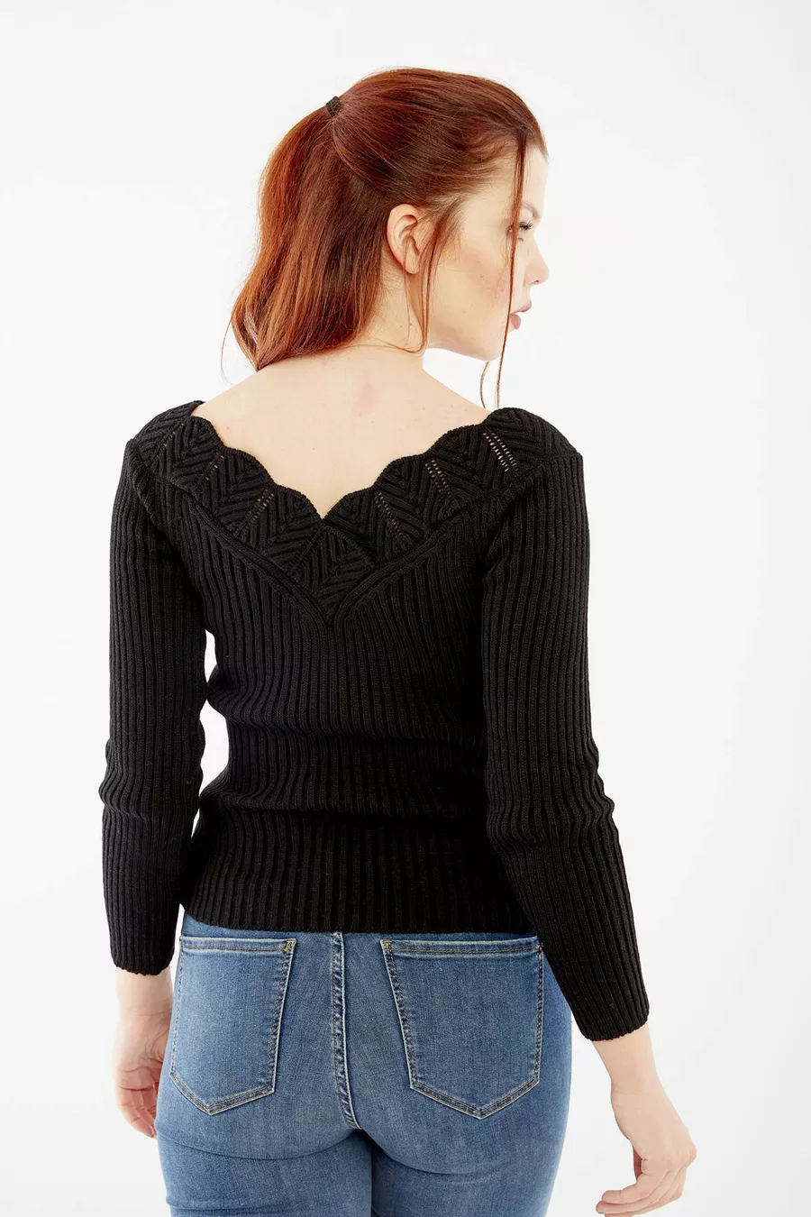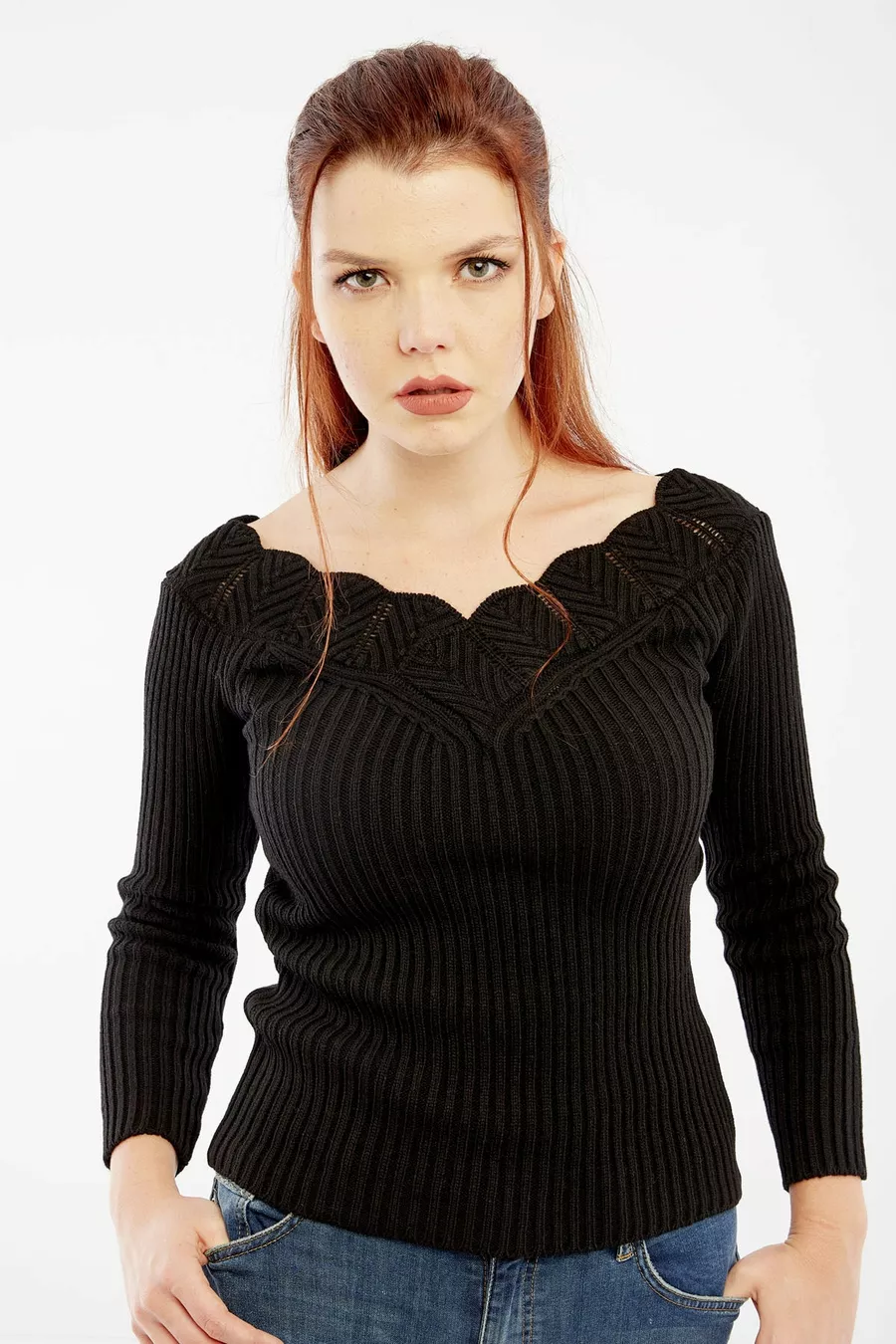 Damen Pullover mit schwarzem Kragen-Detail