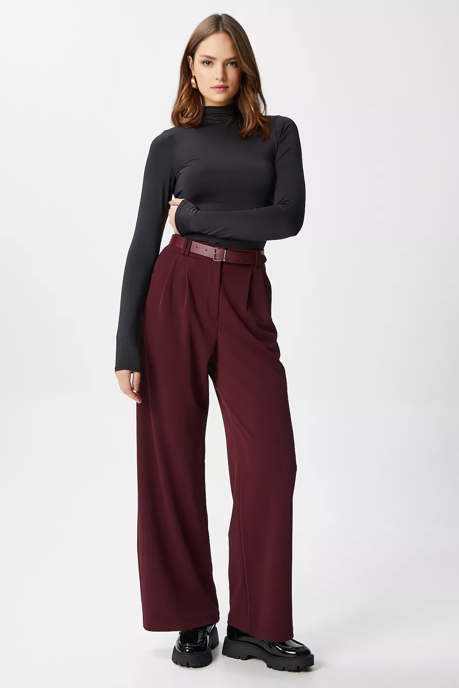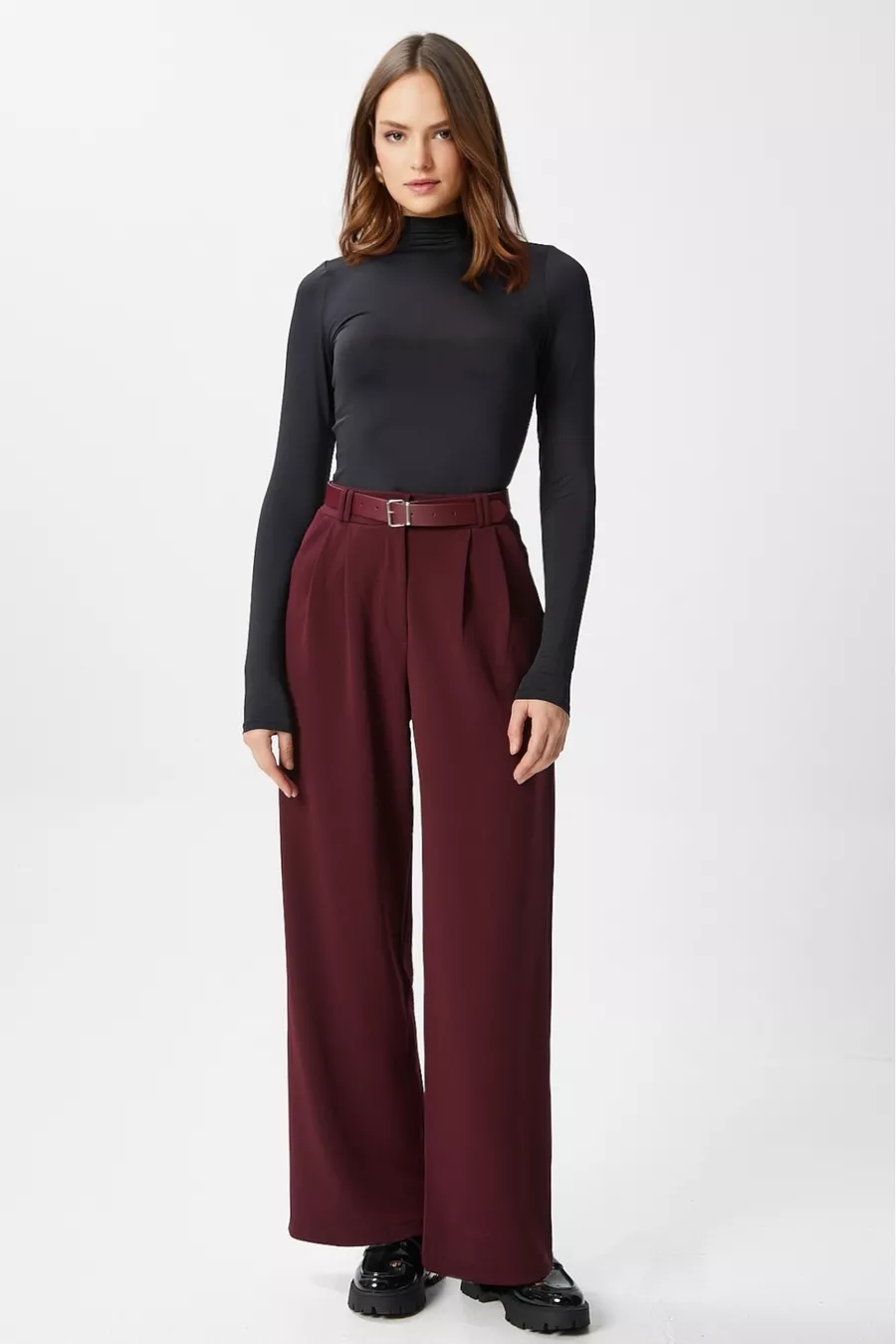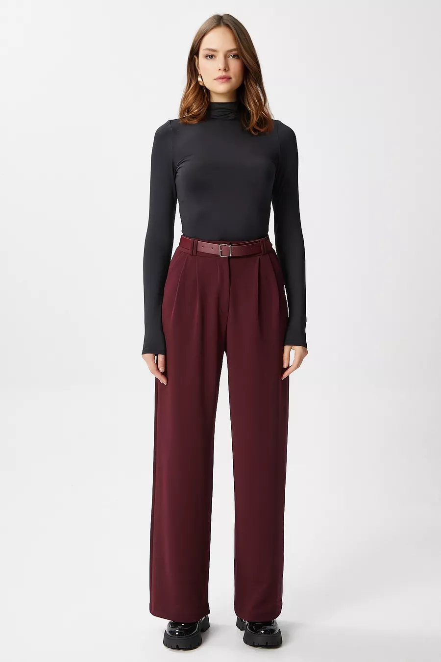 Damen Rena Gürtel mit Stretch Bordeaux Palazzo Hose