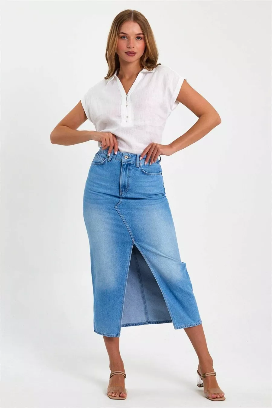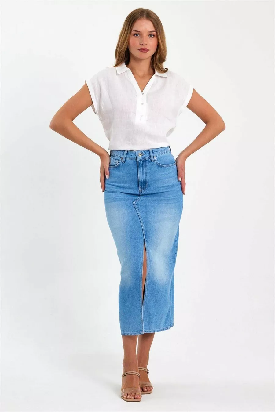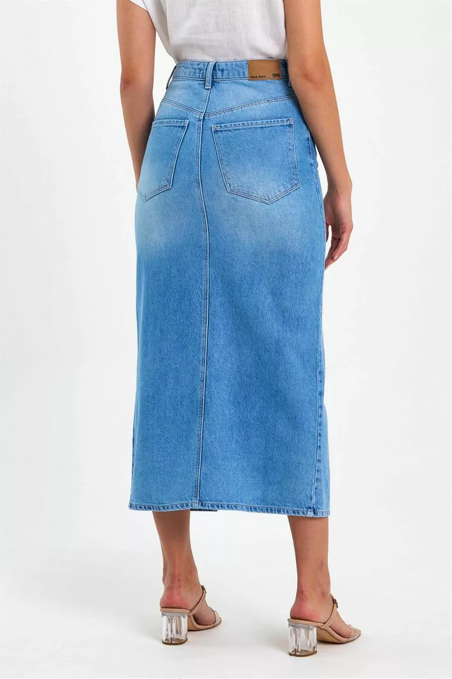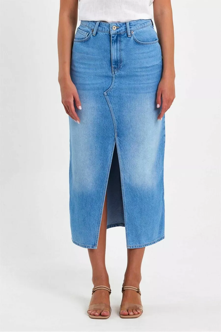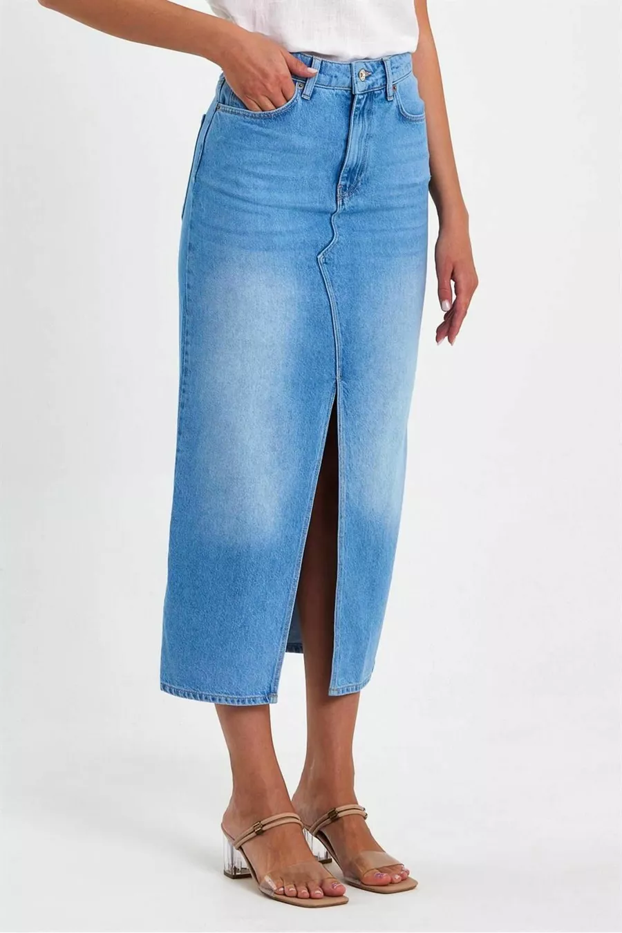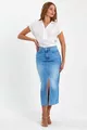 Damen Rita Midi Boy Med Blauer Jeans-Bleistiftrock mit Schlitz