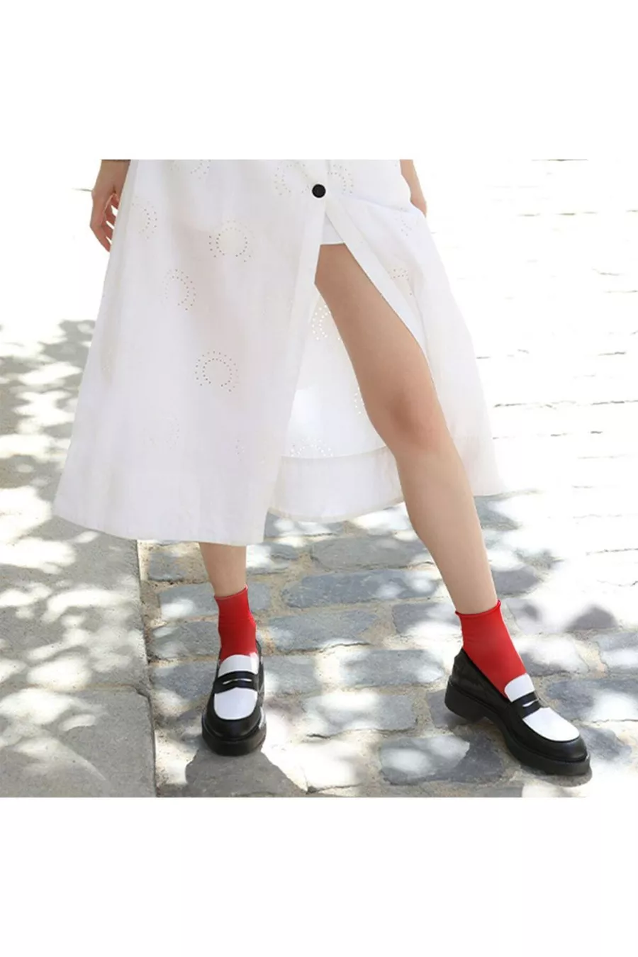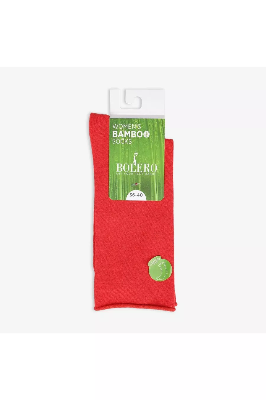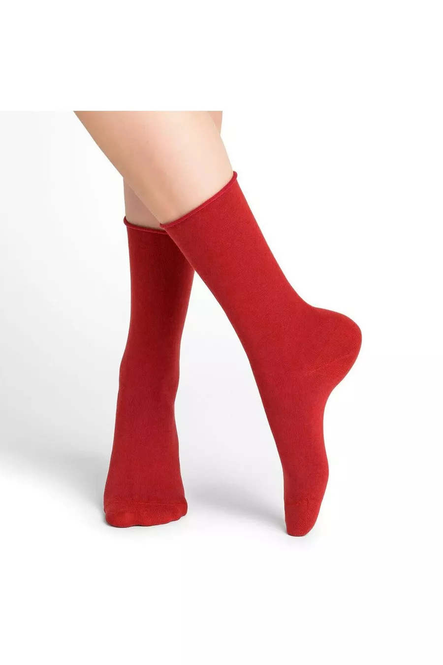 Damen Rote Bambus Socke ohne Bündchen, Roll-Top