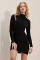 Damen Schwarz Stehkragen Drapiertes Sandy Kleid