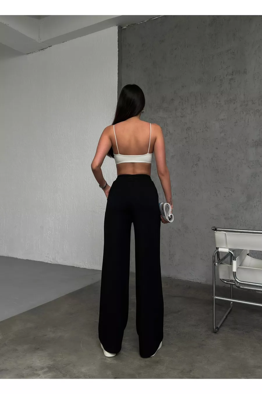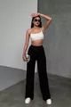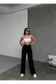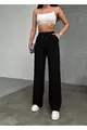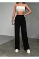 Damen Schwarze Modal Stoff Weite Hosen Hohe Taille Palazzo Jogginghose mit Kordelzug