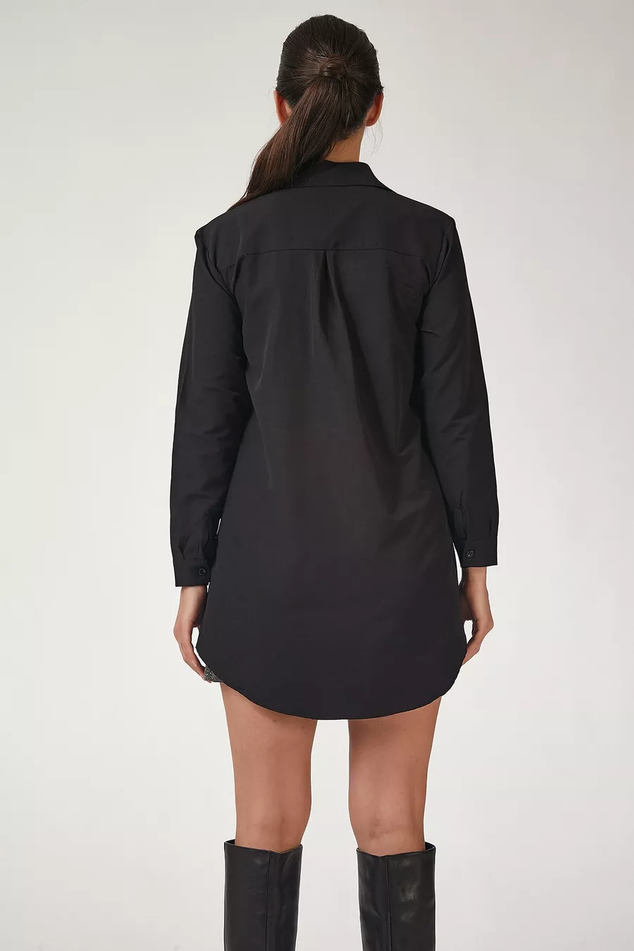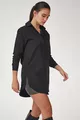 Damen Schwarzes Langes Boyfriend Popelinehemd